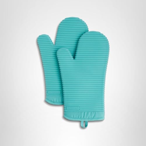 DURABLE, HEAT RESISTANT SILICONE - The Kitchen Aid Ribbed Soft Silicone mitts are heat resistant up to 500 degrees Fahrenheit to safely shield hands from the heat while cooking and handling hot pans and dishes.