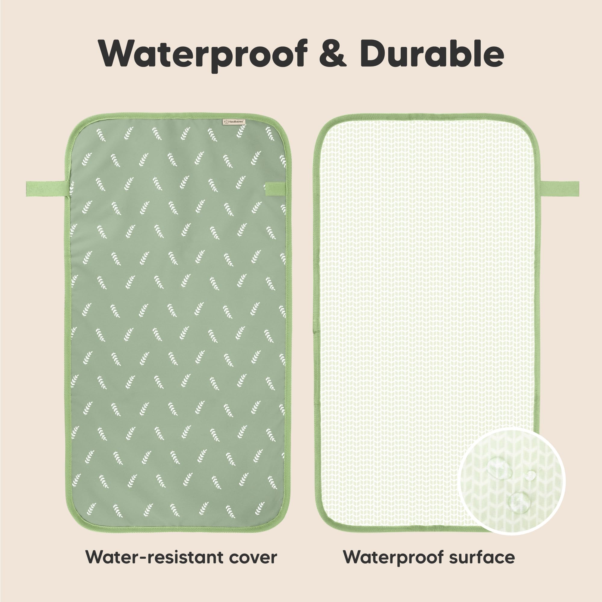 Waterproof Diaper Changing Mat - We use high quality, waterproof and smooth diaper changing surface for easy spot cleaning while on the go. Simply wipe clean with wet wipes or sanitizer after each use.