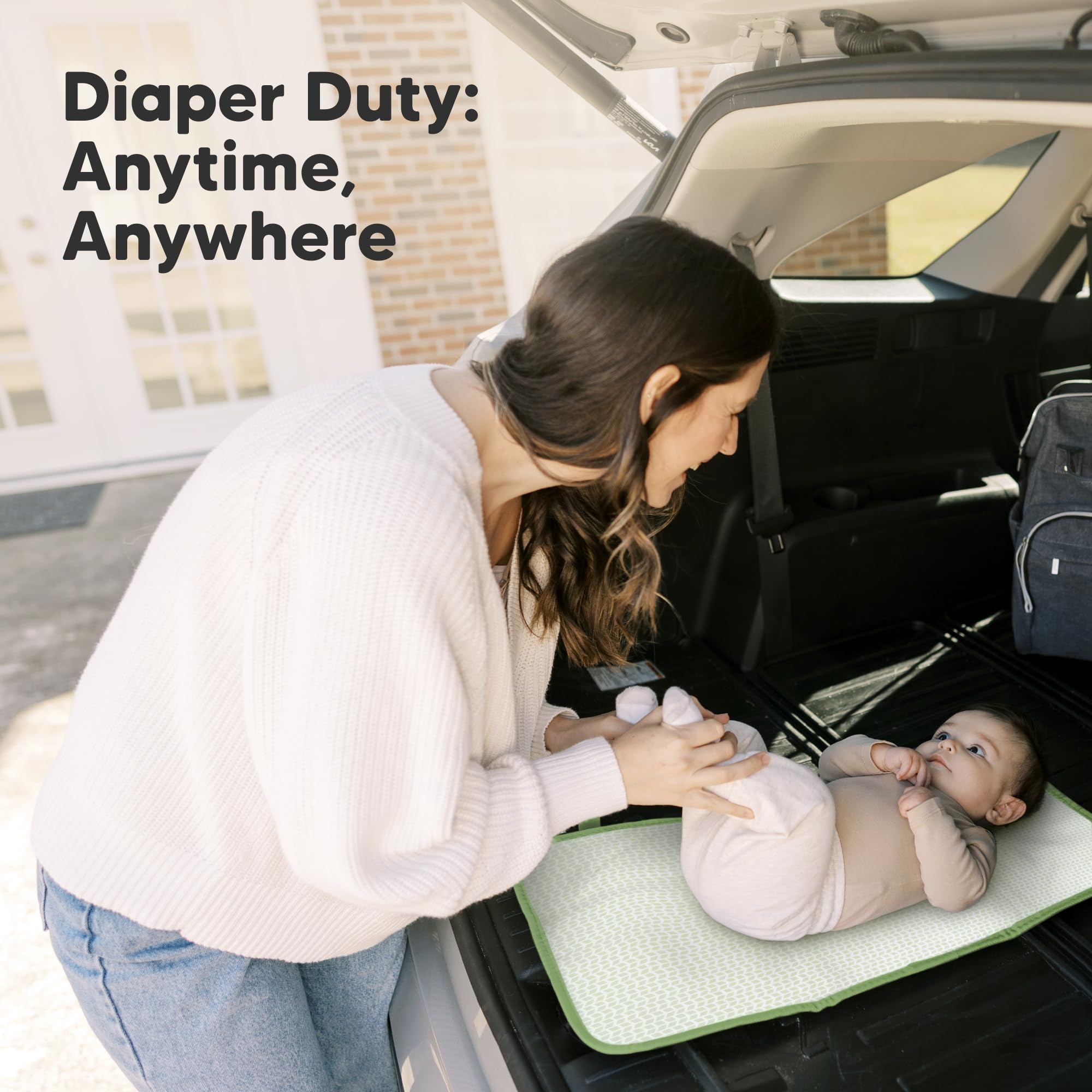 Compact Folded Size - Our Portable Changing Pad is foldable into a clutch-sized 6.8" by 8.5" | 17cm by 22cm pad, taking up minimal space in your diaper bag. Perfect for on-the-go parents, it's an ideal travel changing pad for a day out!