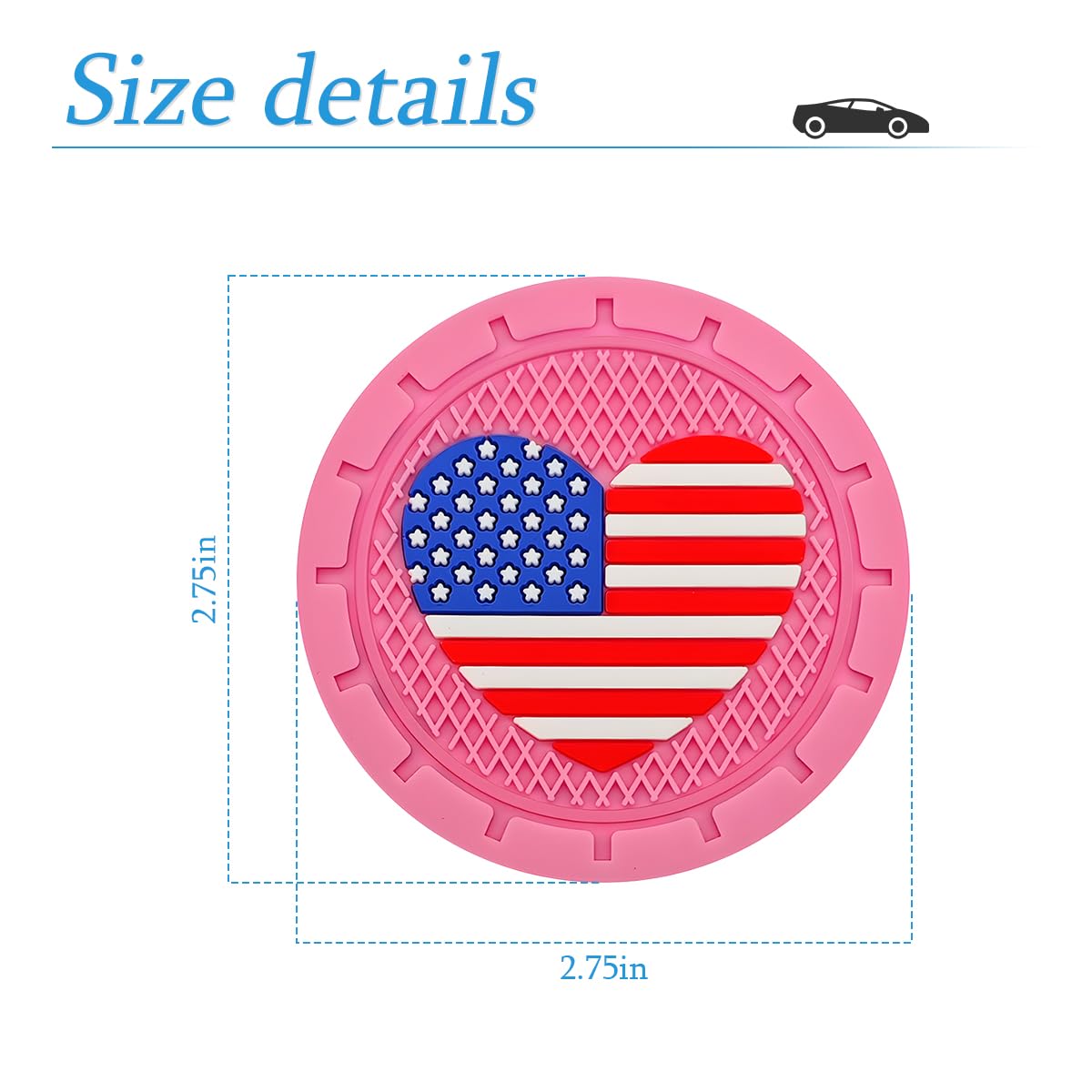 Specifications: Material: PVC Color: Semicircle American Flag with USA Logo, American Flag in Love Heart Shape, Pentagram American Flag with USA Logo, Colored American Flag, Black American Flag Size: Diameter 2.75 inches (7cm), Thickness 0.2 inches Weight: About 18g Package Include: 2 * Car Cup Holder Coaster About Product: - The coaster is waterproof and can be washed in water using a brush and dried quickly. - The coasters are soft and flexible, bend at will, rebound in a second and easily return to their original shape. - The PVC material is non-flammable and has a strong weather resistance, so you can use it with confidence.