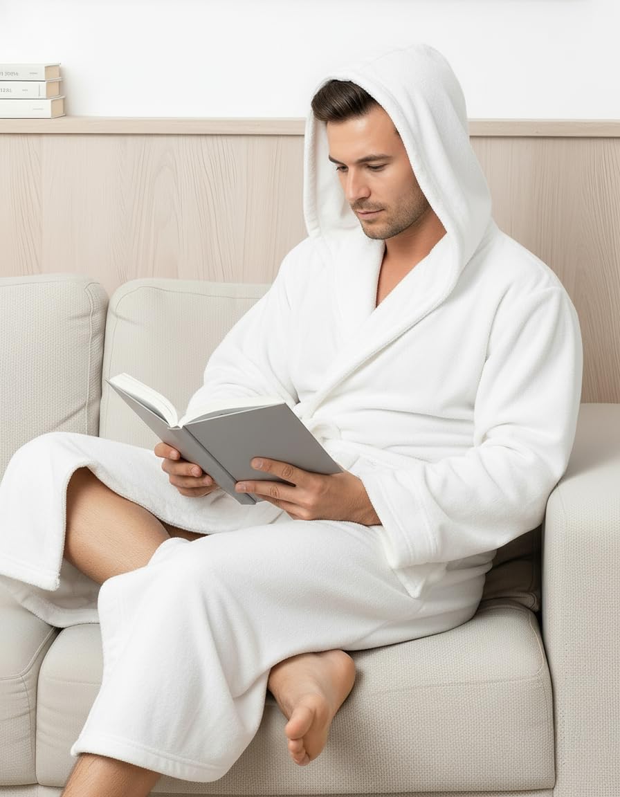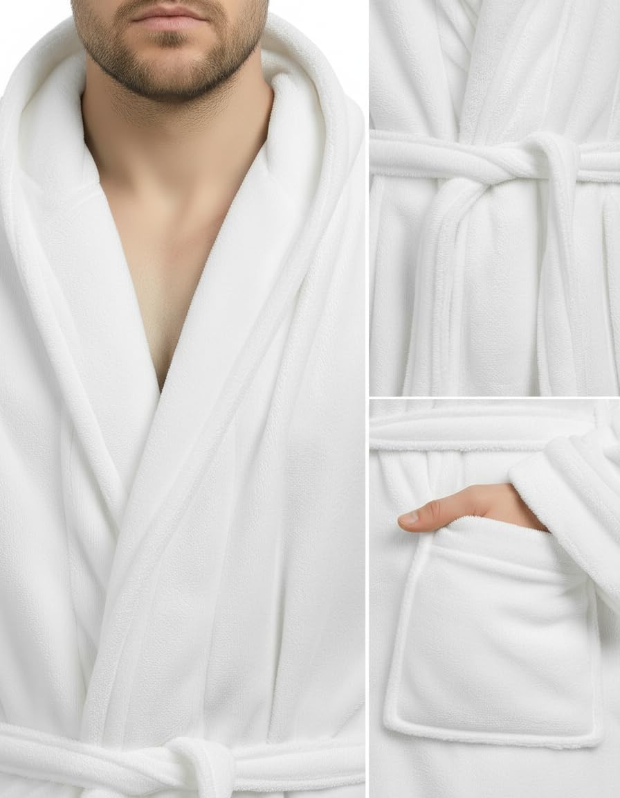 Description Wrap yourself in warmth and comfort with our premium fleece robe for men, designed with a cozy hood for added coverage. This ultra-soft mens robe is perfect for lounging or chilly mornings. Made from high-quality fleece, it delivers both comfort and durability. Whether you’re looking for a classic bath robe, a cozy mens bathrobe, or a functional bathrobe men can count on, this robe has it all. With a secure waist tie and relaxed fit, it offers the perfect blend of style and ease. Elevate your homewear with a robe for men that’s built for everyday comfort.