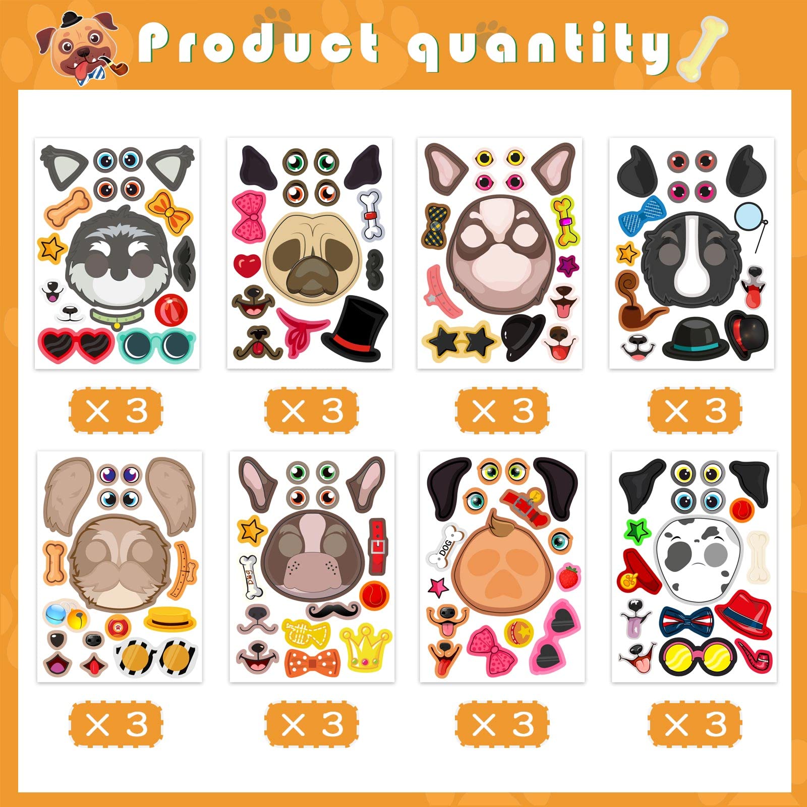 🐶Make Your Own Stickers for Kids:You will receive 24 stickers(size:7.08 x 5.11 inch). This DIY dog sticker kit includes various dog-themed designs such as cute dog faces, dog paws, dog noses, and dog ears. They can let their imagination run wild and make their own unique stickers.