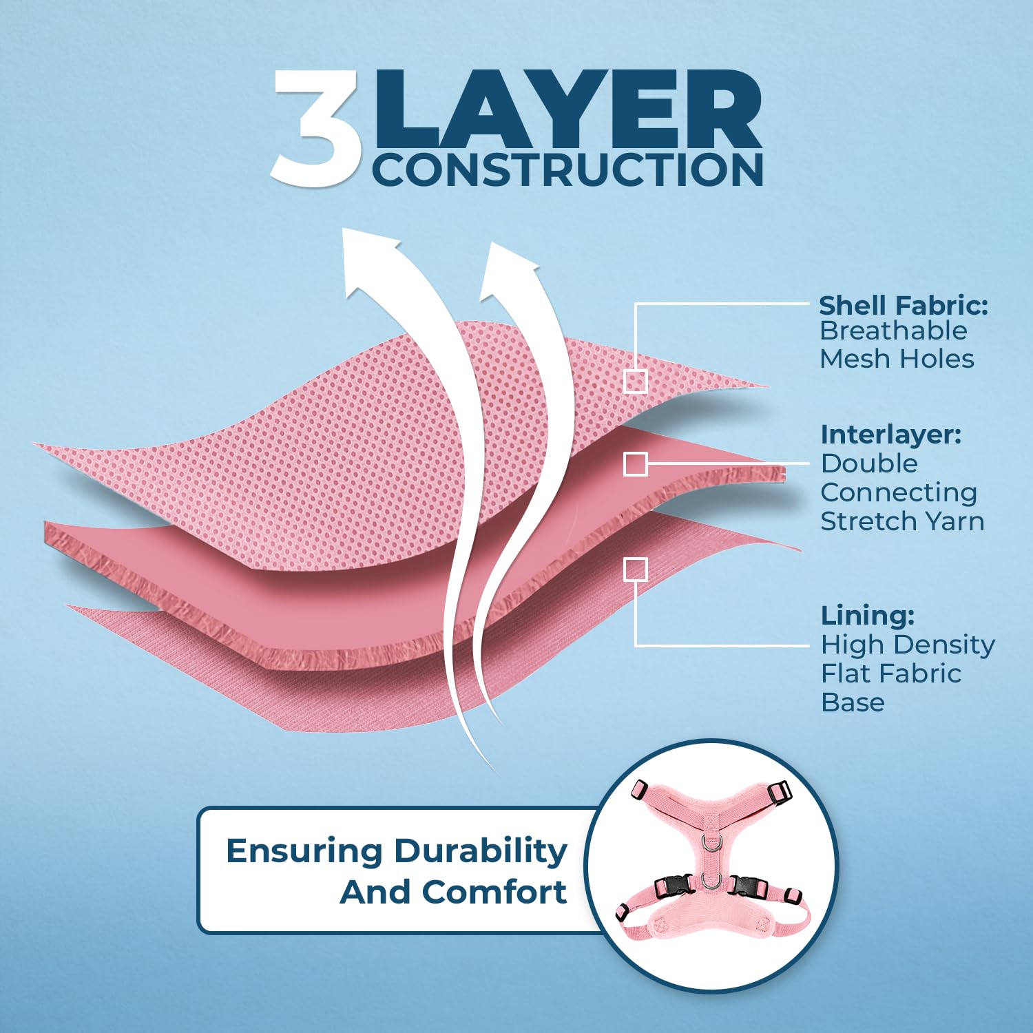 ALL WEATHER AIR MESH: Made a soft, breathable air mesh, this fully adjustable and lightweight pet harness is perfect for walks all year round