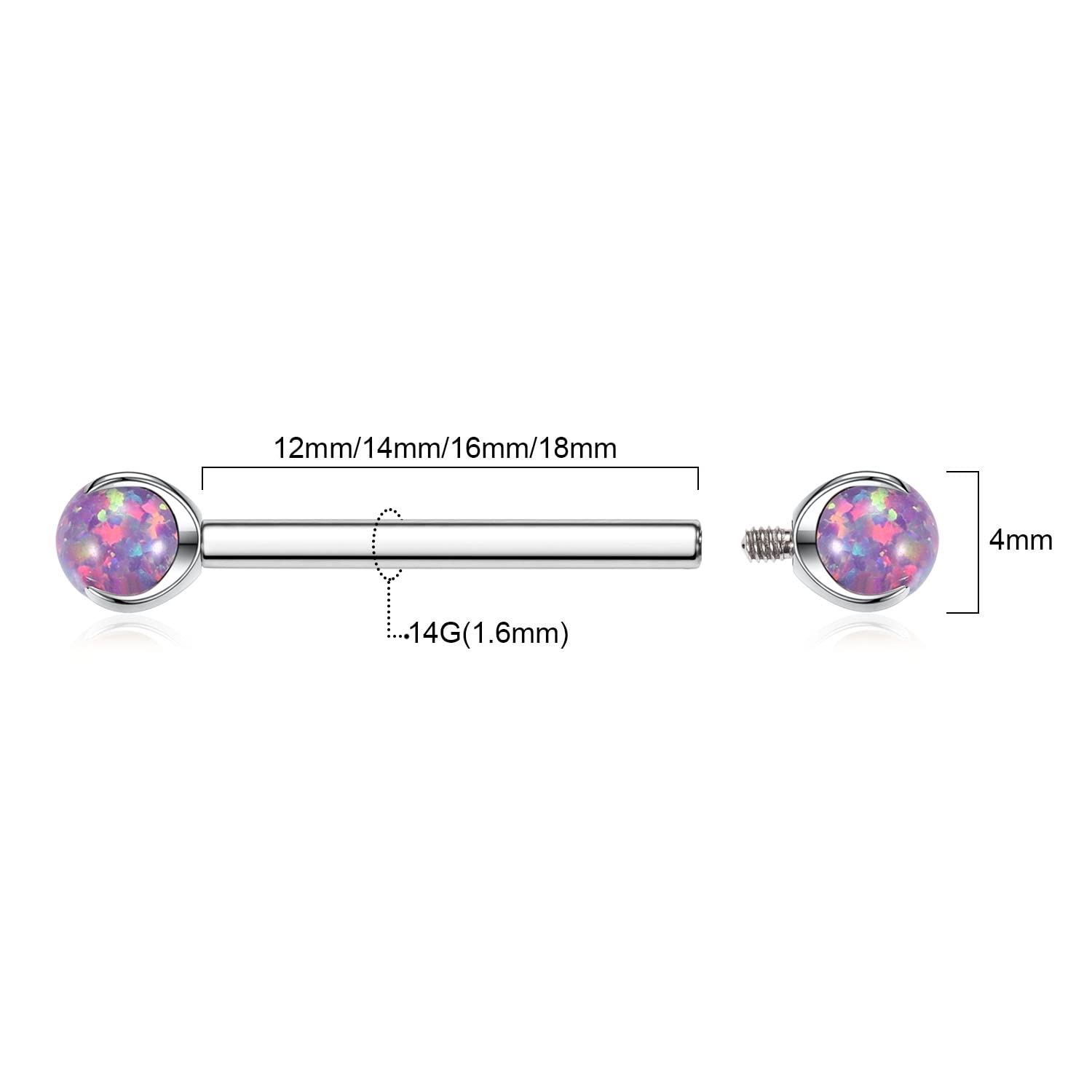 Size: Gauge: 14 G (1.6 mm); Nipple Barbell Length: 9/16"(14 mm); Ball Size: 4 mm, 1 pair nipple ring per order