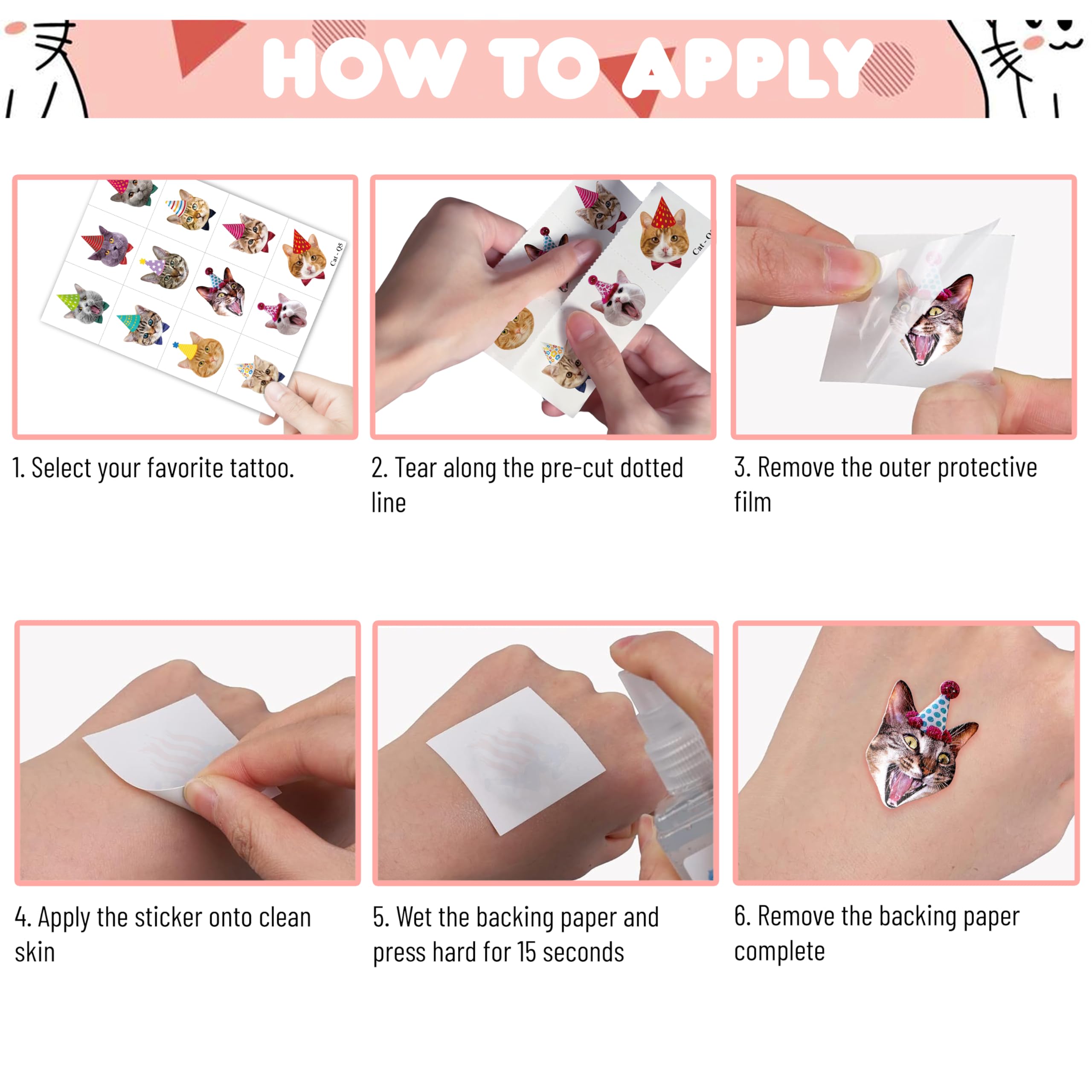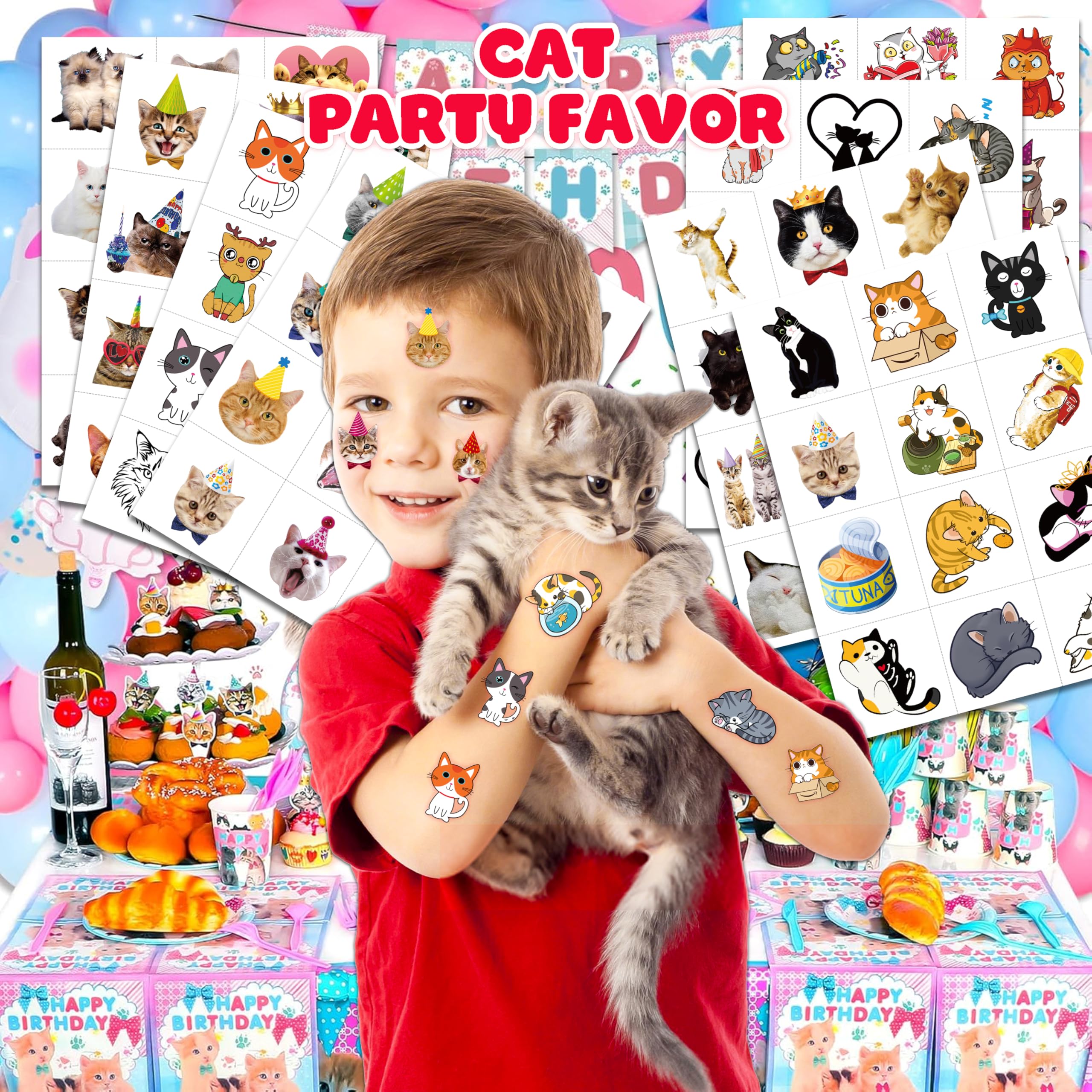 😻 Perfect Cat Birthday Decorations: All the temporary tattoos are design with many themed. Fits any smooth part: face, hands, arms, shoulders, back, legs water bottle, cup,mug and other stuff and so on. Great fun for party favors, birthday gift, clubs, festivals or party supplies,etc. and can be used by children, kids, girls, boys, women, men.