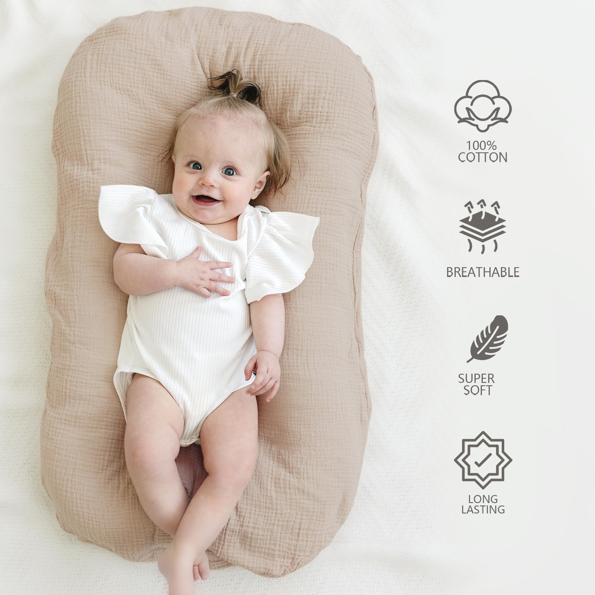 Premium Muslin Material: Crafted from 100% cotton muslin, these lounger covers offer superior breathability and softness, ensuring a cozy and comfortable resting place for your baby