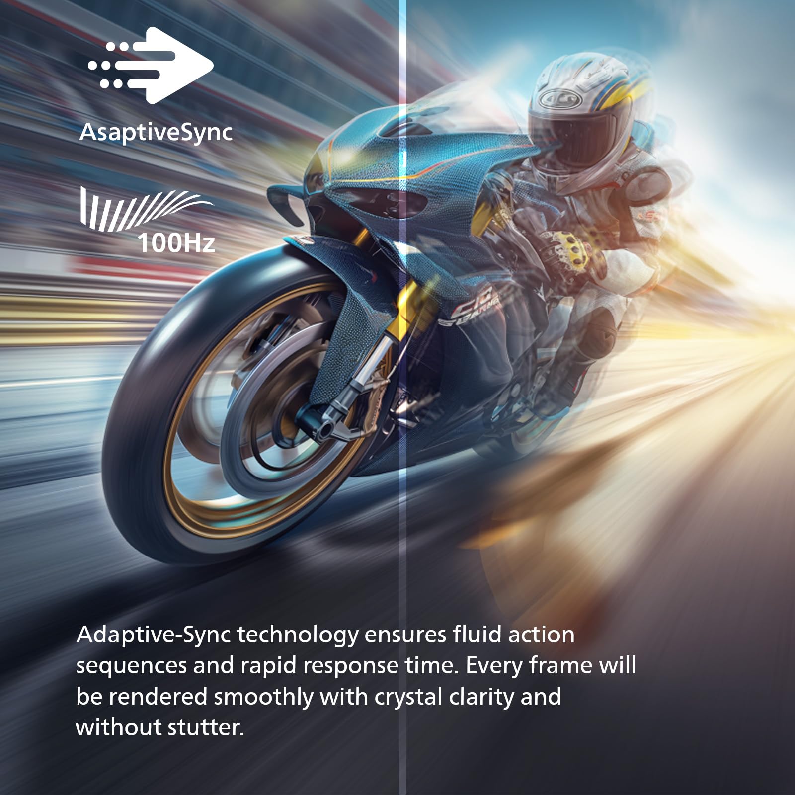 The Philips 27E2N1100 27-inch class monitor boasts Full HD 1920x1080 picture quality for an incredible sense of depth and clarity. With a wide viewing angle VA display and 16.7 million colors, you get vivid images with detail from every vantage point. Switch from working to gaming seamlessly with 100Hz speedy refresh rate. Adaptive-Sync technology ensures fluid action sequences and rapid response time. Every frame will be rendered smoothly with crystal clarity and without stutter. Whether you’re a demanding professional requiring extremely detailed information for CAD-CAM solutions, using 3D graphic applications or a financial wizard working on huge spreadsheets, this display will make your work easier and more efficient. Philip LowBlue Mode and flicker-free technology protects your eyes from harmful blue rays and prevents eye fatigue.