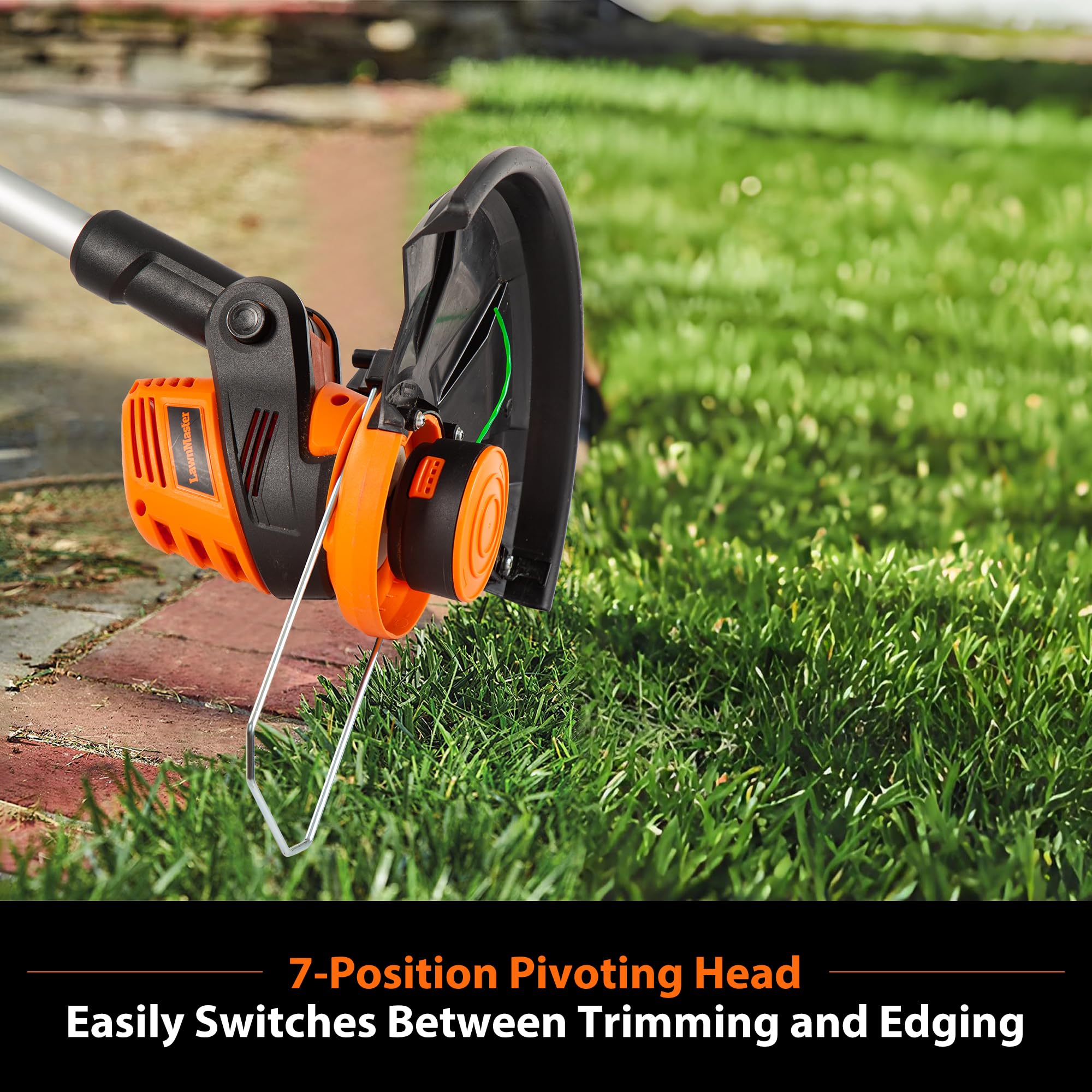 TRIMMER CONVERTS TO EDGER: Features a 10-inch cutting width and 7-position pivoting head to manicure edges, tight areas or uneven landscapes precisely