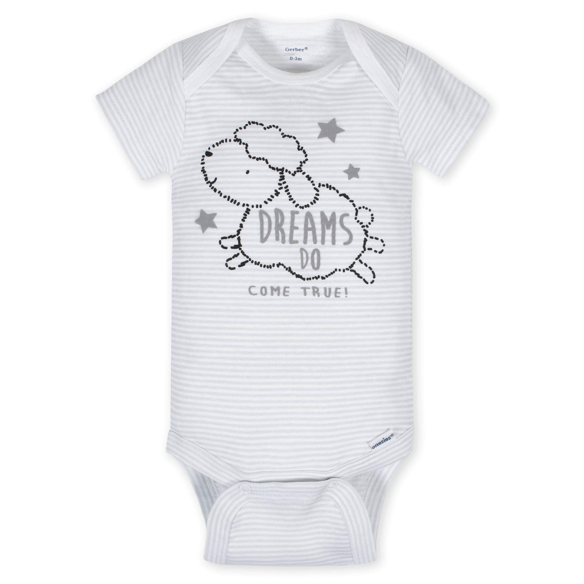 Description Your little girl will start the day looking her best dressed in one of these Gerber Onesies brand short sleeve bodysuits! Moms and dads will appreciate the higher-in-the-front bottom nickel-free snaps closure that makes for fast and easy diaper changes. 100% cotton rib for breathability and comfort. Mix and match with your favorite bottoms to create a complete look. An essential item for new parents, great for gift giving.