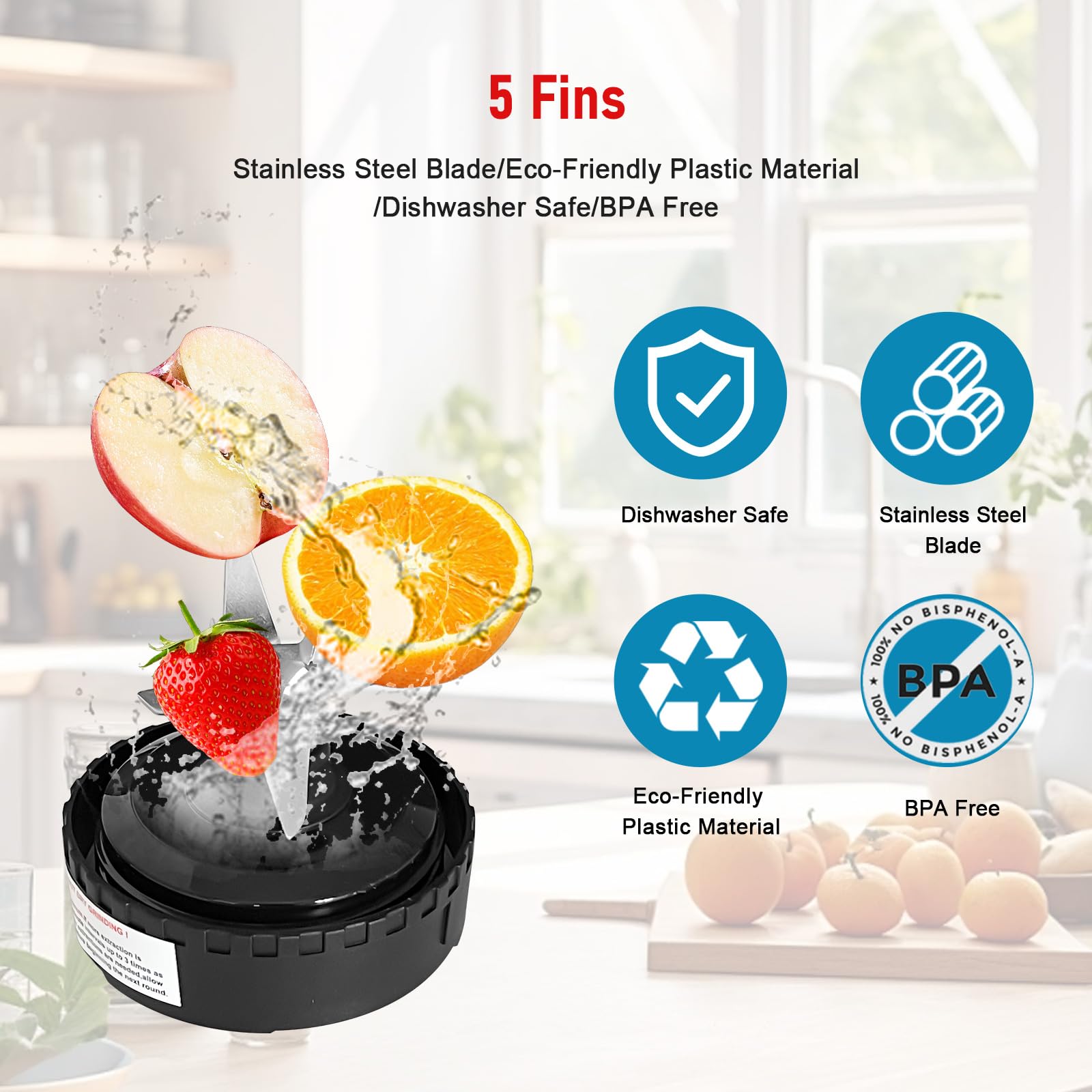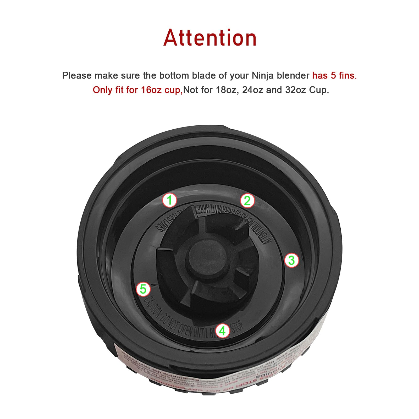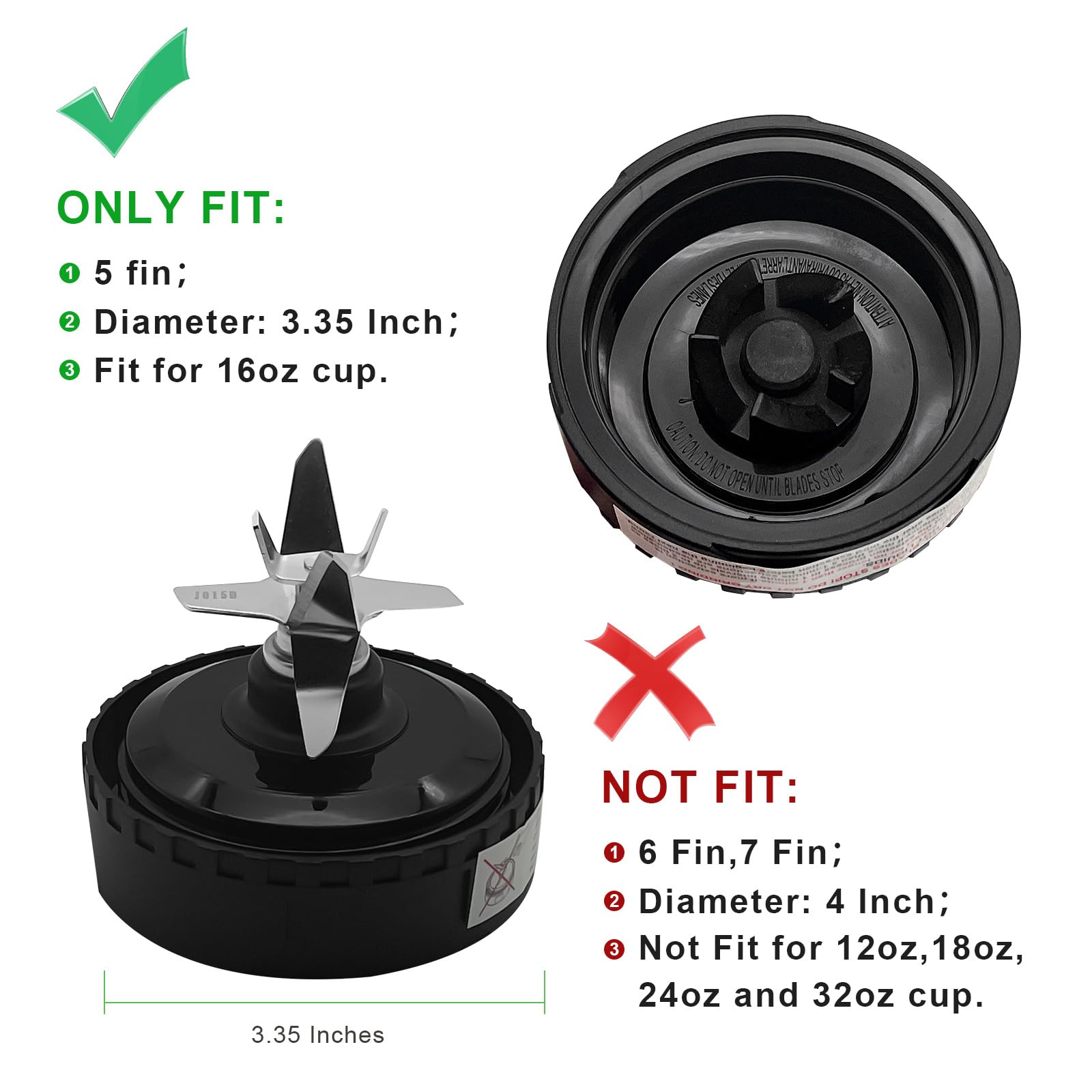 【Fits for single serve 16 oz cups】 3.35 inch"/8.5cm diameter. 5-Fin blade for quick processing. Fit for single serve blade 16 oz cups, (Not fit for 18oz, 24oz, 32oz cups). Please confirm your blender base has 5 fins before purchasing
