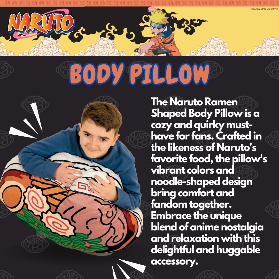 SOFT PLUSH QUALITY: Snuggle up with this themed oversized Naruto Ramen body pillow made of super soft plush material. Add this comfy and colourful cushion to a bedroom or living space to bring some style to your home decor.