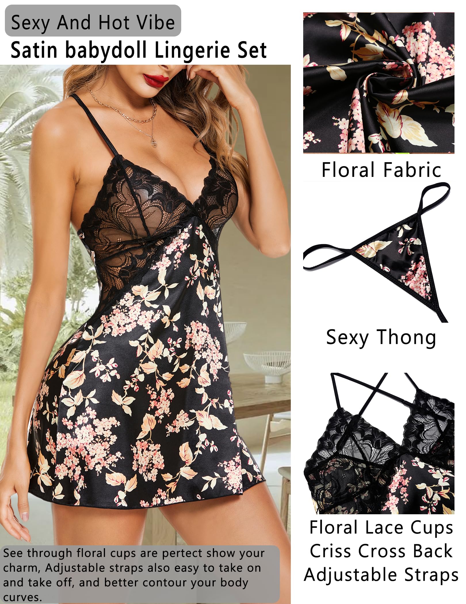 Avidlove satin nightgown for women/avidlove lingerie for women/womens sexy lingerie/nightgown satin sleepwear/halter chemise lace babydoll nightwear outfits features deep V plunge front, floral lace cups and adjustable criss-cross straps, it inspires sultry flirtation and your true beauty