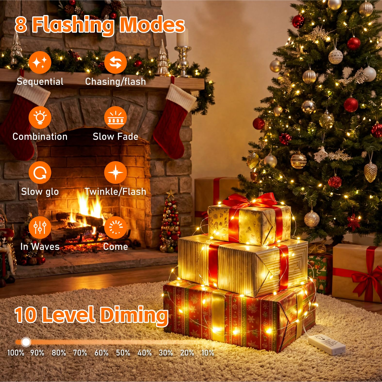 Consistent Brightness & 8 Modes: Powered by an upgraded chip, these rechargeable battery fairy lights indoor stay bright and steady with a uniform warm glow from start to finish. This ensures your crafts and decor look great with consistent lighting throughout the entire week, not just the first few hours. Easily switch between 8 dynamic lighting modes to create the perfect atmosphere for parties or relaxation.