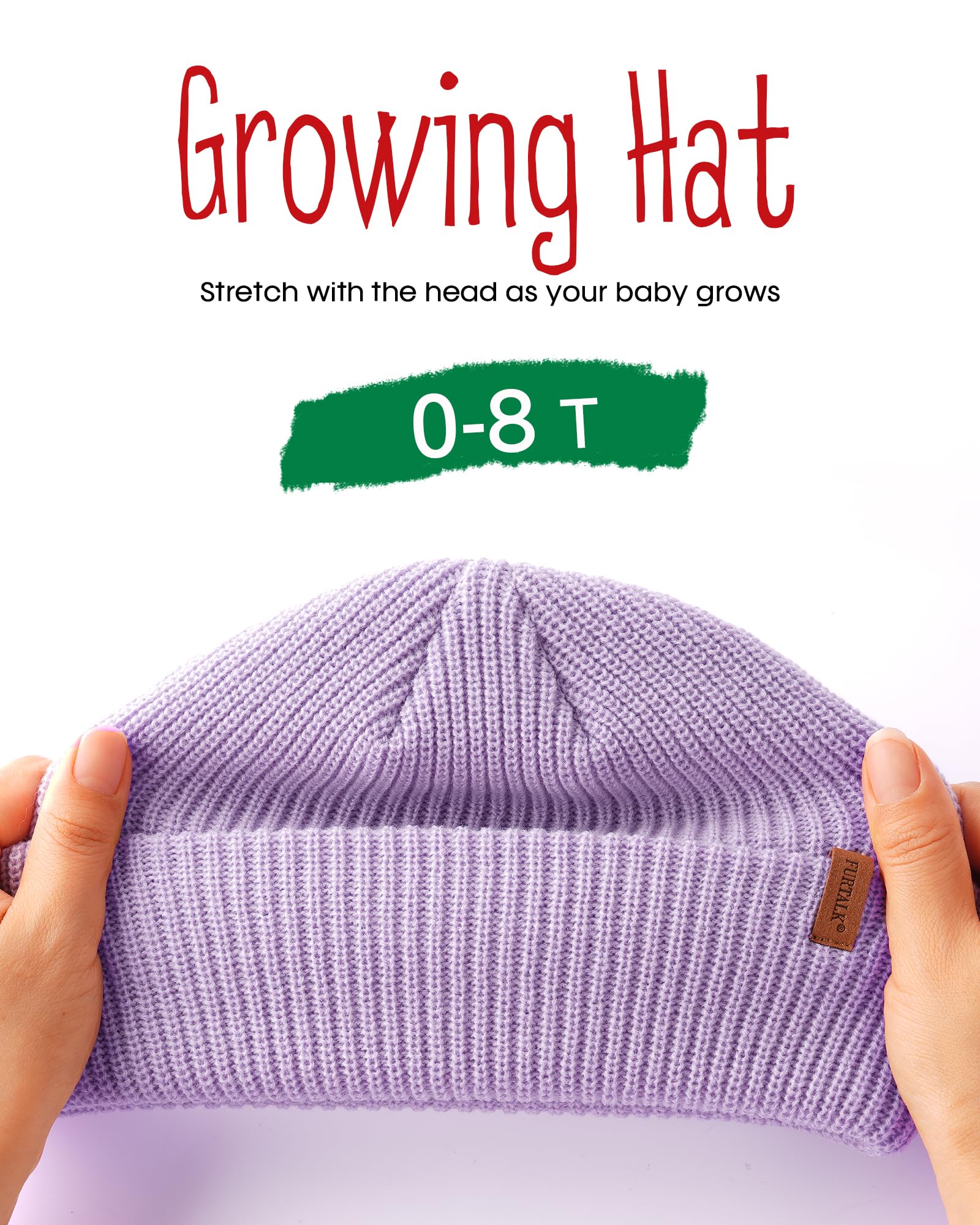 This kids beanie comes in 3 size:0-6 months,6-36 months,3-8 years;It performs great in flexibility and stretchability,elastic yet not loose,it can be stretched with the head as the child grows;