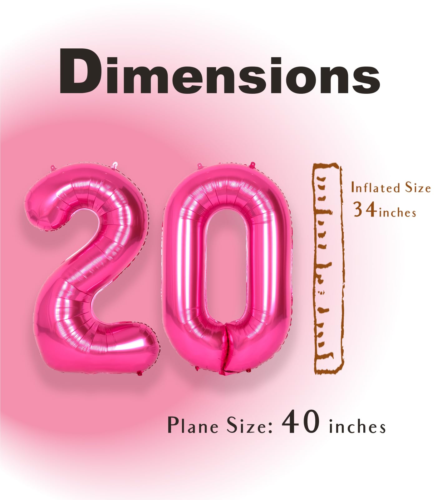 [ Jumbo Sized ] - SUWEN provides 40 inch 0-9 giant hot pink number balloons. This package contains hot pink numbers 20 foil balloon, and an inflatable straw to make inflation and deflation more convenient