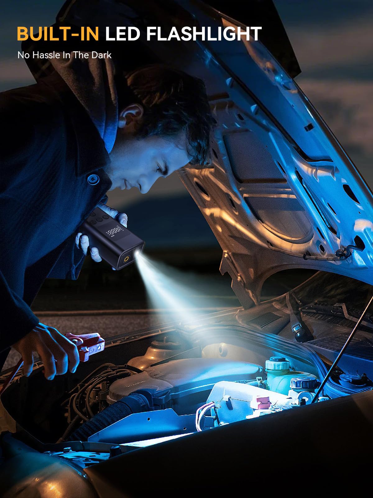 Auto Shut-Off & Digital Gauge:The portable air compressor car tire comes with a built-in pressure gauge and LCD screen that allows you to accurately monitor real-time tire pressure, and the auto shut-off prevents overfilling. The car tire air pump LED light lets you use it in dark garages or roadside breakdowns. AIRSURE car tire inflator ensuring optimal tire inflation for enhanced safety and performance — making it perfect for new drivers, aging parents, and anyone who just wants convenience