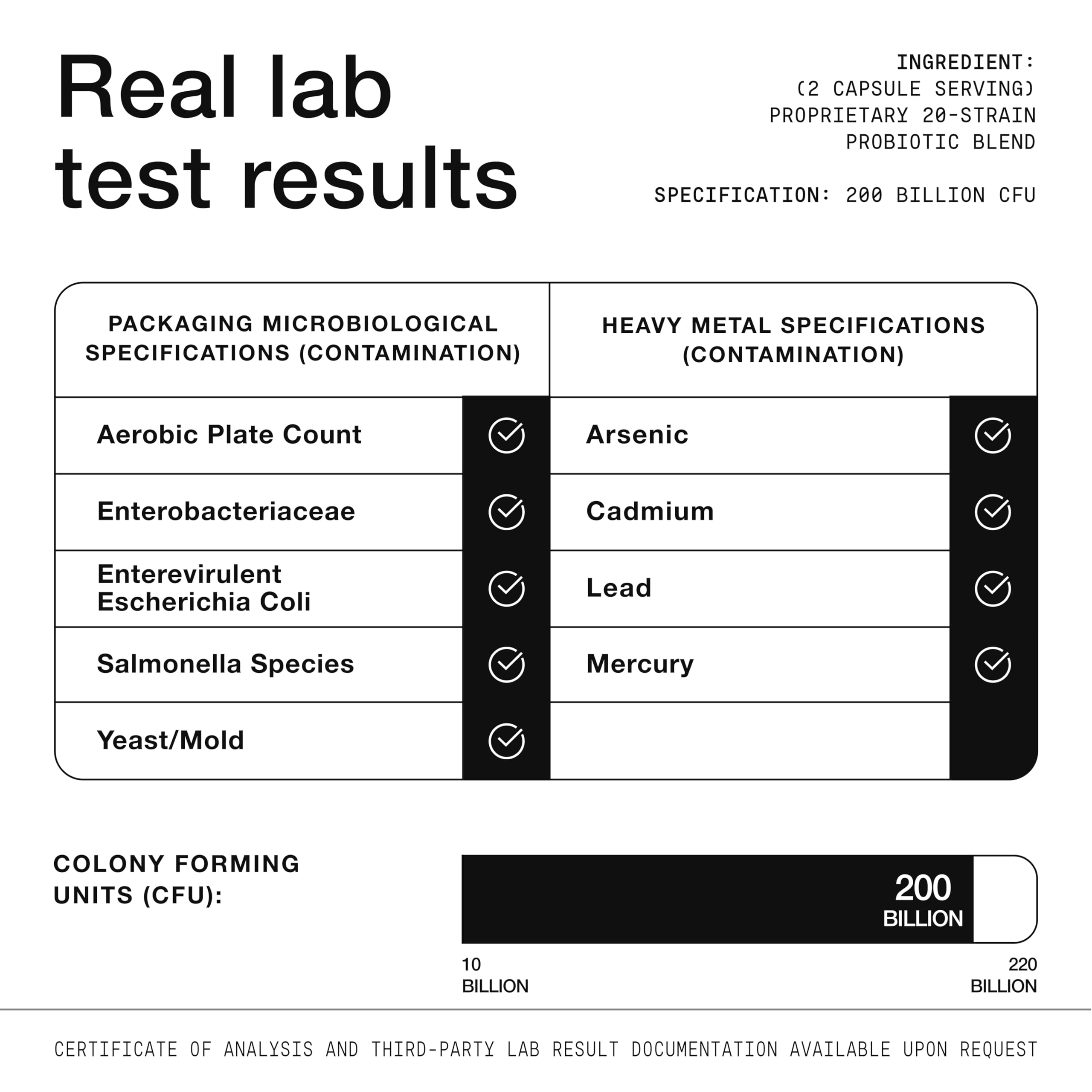 200 Billion CFU + Prebiotic in One Serving: Delivers 200 billion CFUs per day, confirmed by third-party testing. Includes 200 mg of FOS a plant-based prebiotic for a synbiotic formula.