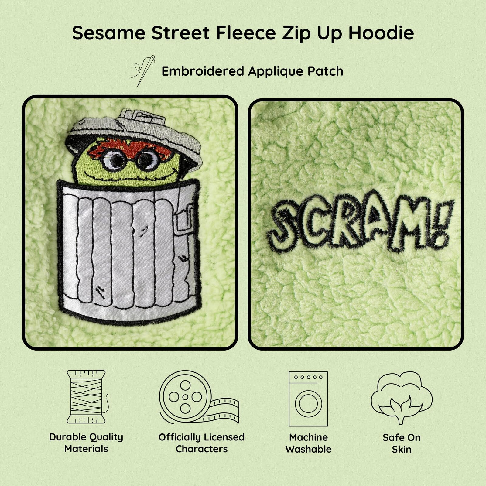 Description Can you tell me how to get to Sesame Street? Dress your little one in this adorable Sesame Street cosplay hoodie and watch them learn and play with their favorite characters! This stylish long sleeve hooded sweatshirt features bright and cheerful Sesame Street embroidered artwork with cute designs of Elmo, Cookie Monster, Oscar the Grouch, and Abby Cadabby that your little one will love to wear! Made from a soft and cozy material that keeps your kid comfortable all day long, this fashionable Sesame Street zip-up hoodie is part of the perfect outfit for a fun day of play!