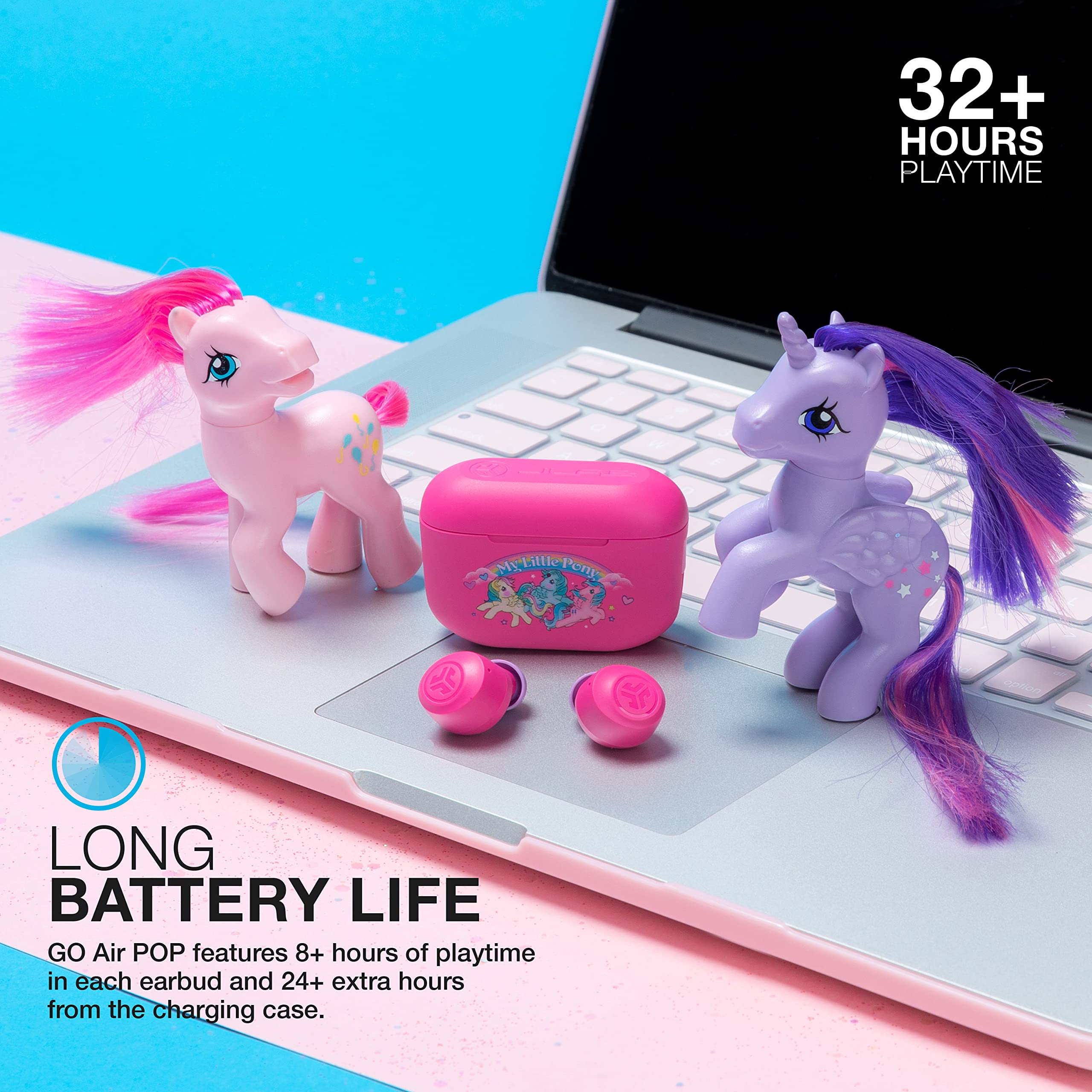 💗 LONG BATTERY LIFE: GO Air POP features 8+ hours of playtime in each earbud and 24+ extra hours from the charging case (32+ hours total). Return to the case to recharge the buds, and use the integrated USB cable to charge the case.