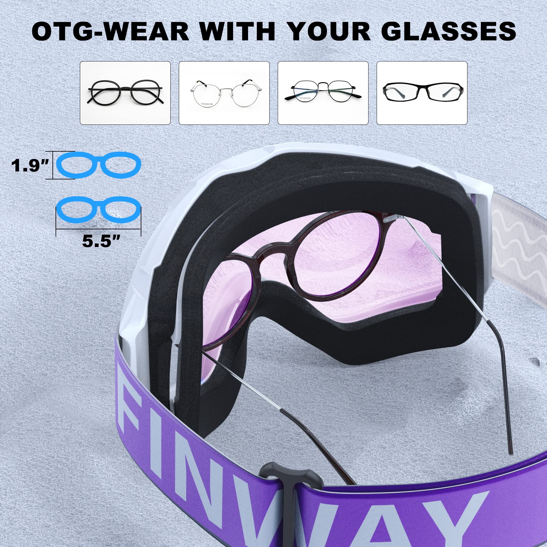 【Oversized OTG (above the glasses) design】-With the OTG (above the glasses) design, the Skiing glasses allow you to wear the glasses under the goggles, and the goggles are also suitable for those who wear glasses. It is perfect for skiing, skiing, snowboarding, ice skating, rock climbing, motorcycling/mountain riding, aerial driving, bungee jumping and more.