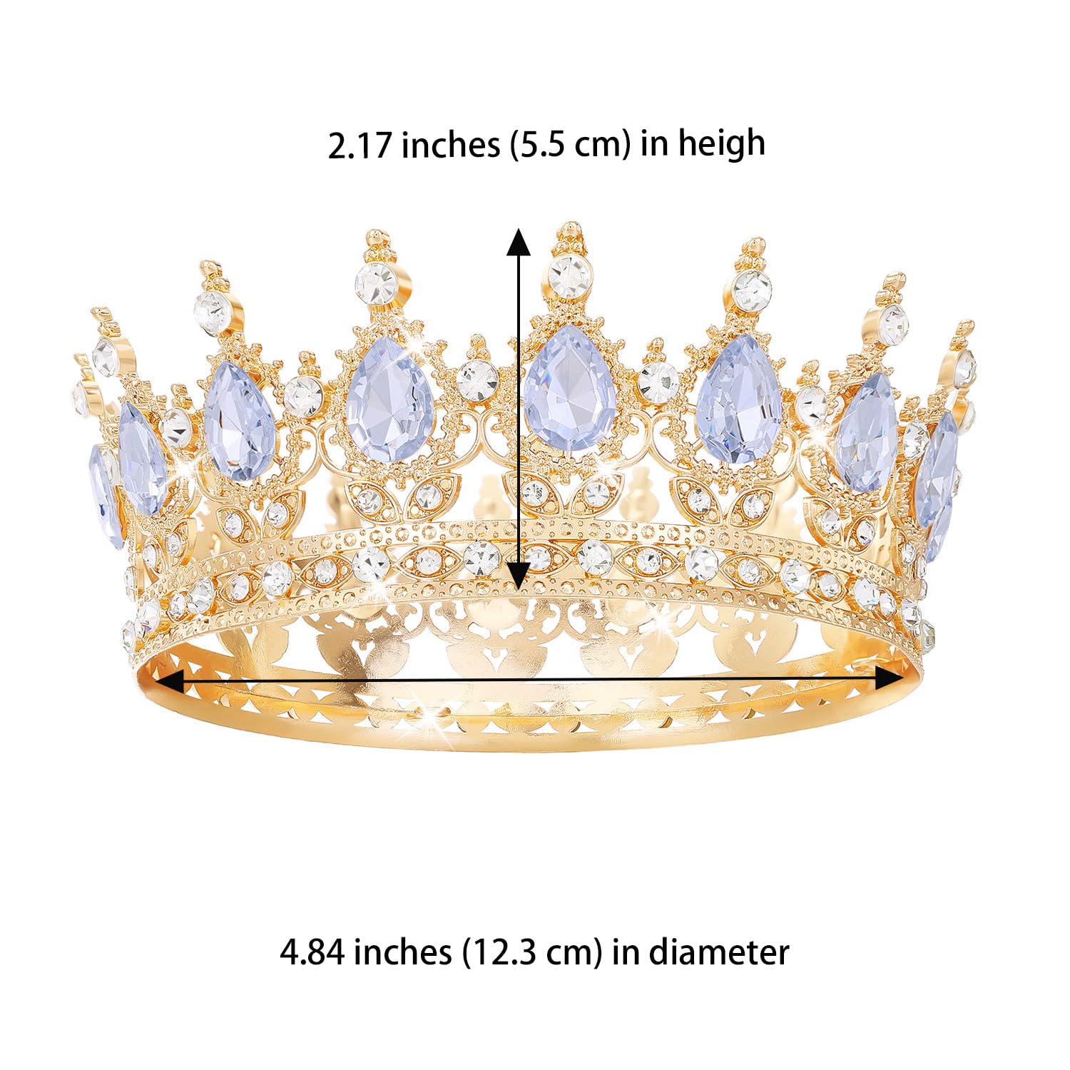 Size and Package: Our tiara crown are suitable for adult women, Diameter about: 4.72 inches, Height about: 2.0 inches, Weight about: 0.234 lb. The package includes four clips to fix the crown on your head and brings you a long and comfortable wearing experience.