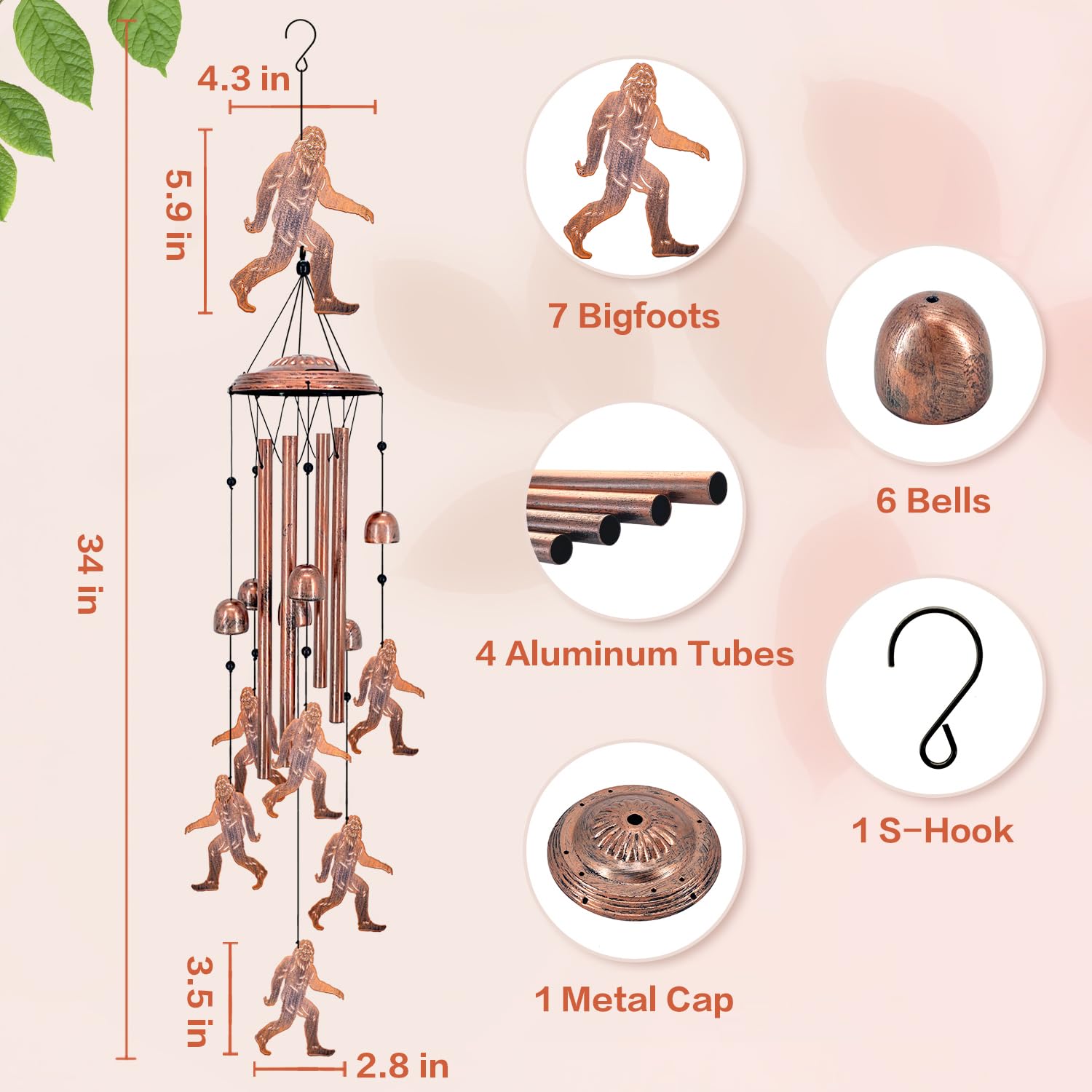 【Soothing Natural Melody】As the breeze flows,the bigfoot wind chime produces a gentle,calming melody that brings the music of nature to your home.Perfect for hanging in gardens,patios,porches,or near windows,it transforms your surroundings into a serene and picturesque retreat,offering relaxation and joy with every gentle ring.