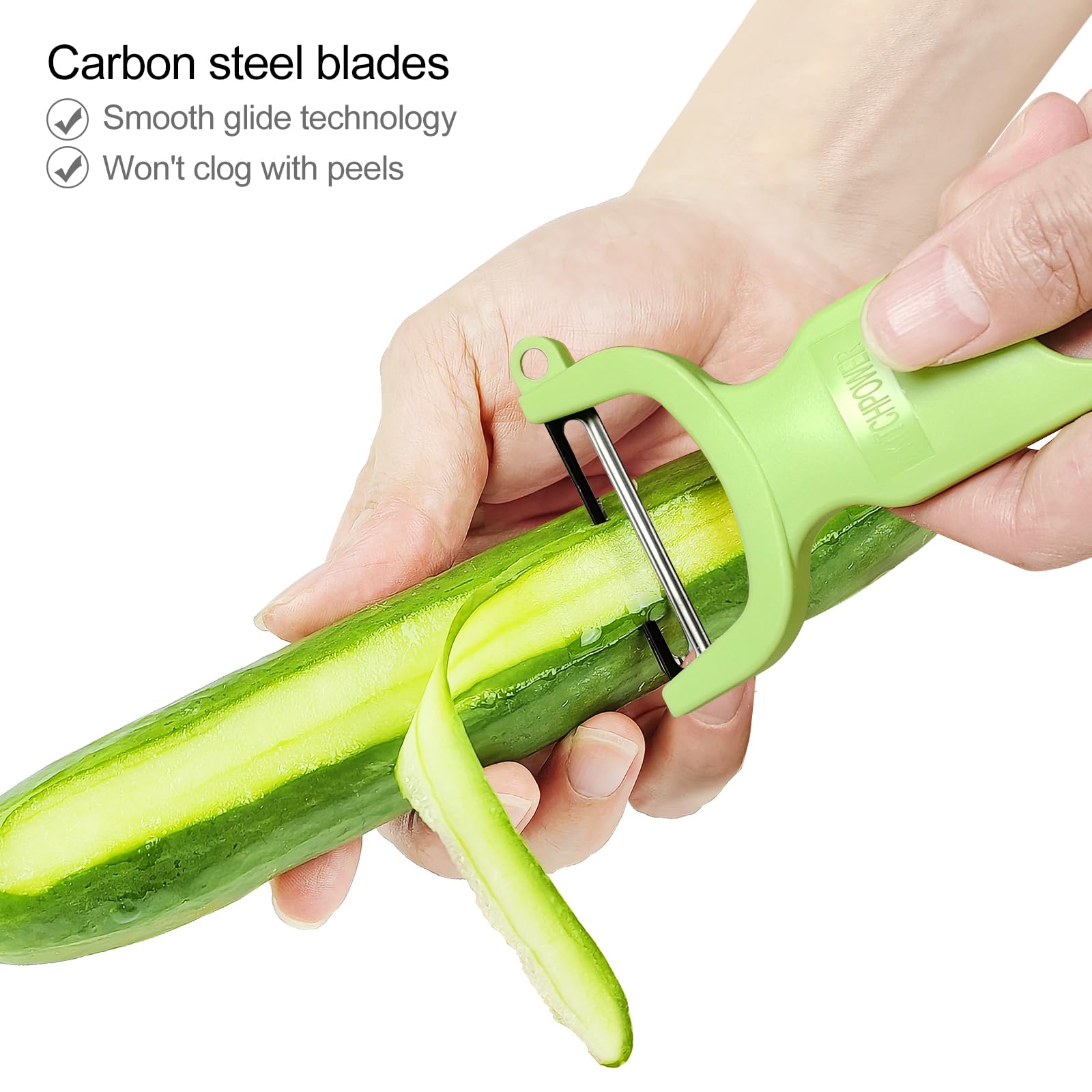 KITCHPOWER VEGGIE PEELER - Peel only the surface of your vegetable or fruit. Whatever the task, this peeler easily handles curved and bumpy surfaces without clogging.