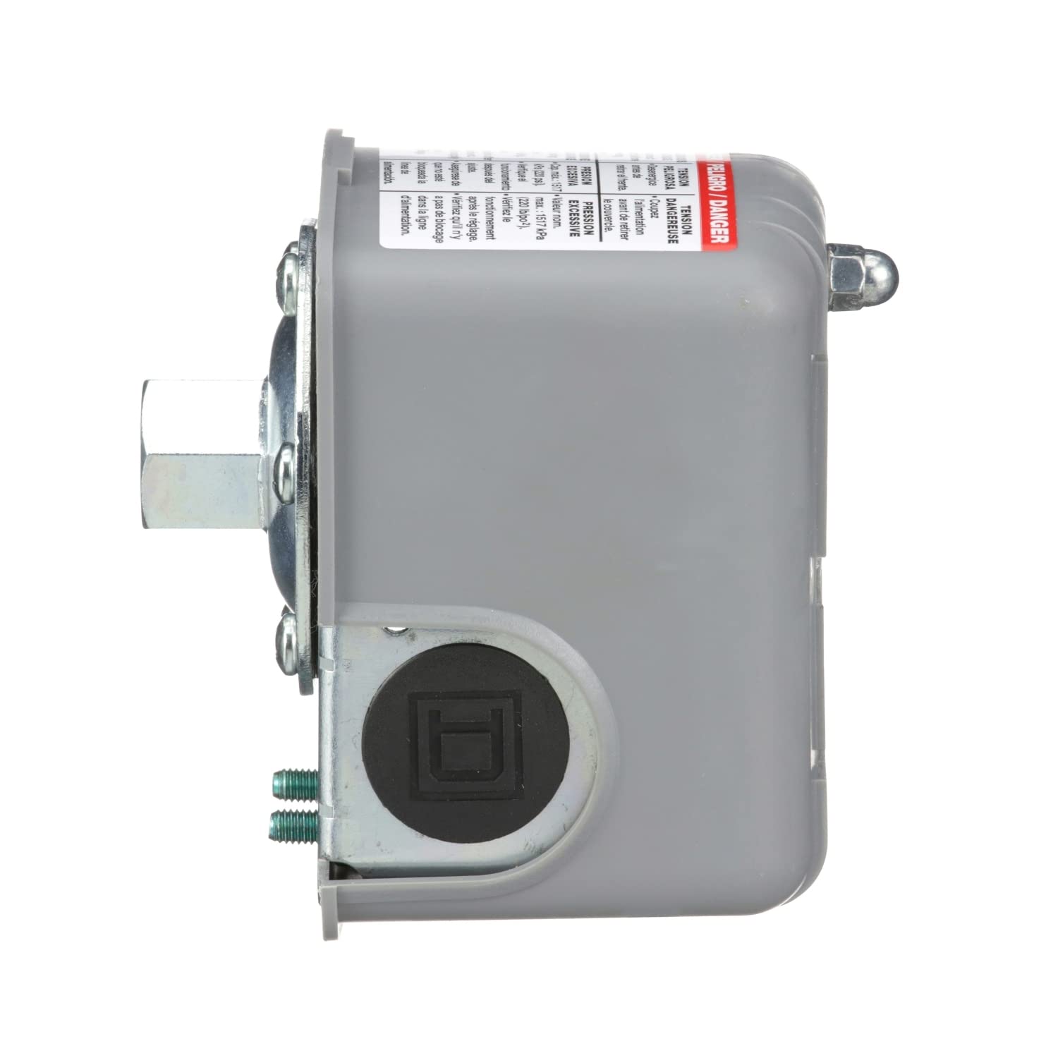 ' Pressure Switch, Factory On/Off Setting 40/60 psi, Differential 15 to 30 psi, Range 5 to 65 psi, Port Type 1-Port 1/4 In. FNPS, Contact Form DPST, Action Standard, Application Water Pump, Unloader No, NEMA Rating 1, Series 9013FSG, HP @ 1 Phase - 120V 1-1/2, HP @ 1 Phase - 240V 2, HP @ 3 Phase - 240V 3, HP @ 3 Phase - 480V 1, Temp. Range -22 Degrees to 257 Degrees F, Standards UL 508, NEC Article 430-84, ANSI /NSF Standard 61, FDA 21CFR.2600, CSA Certified '