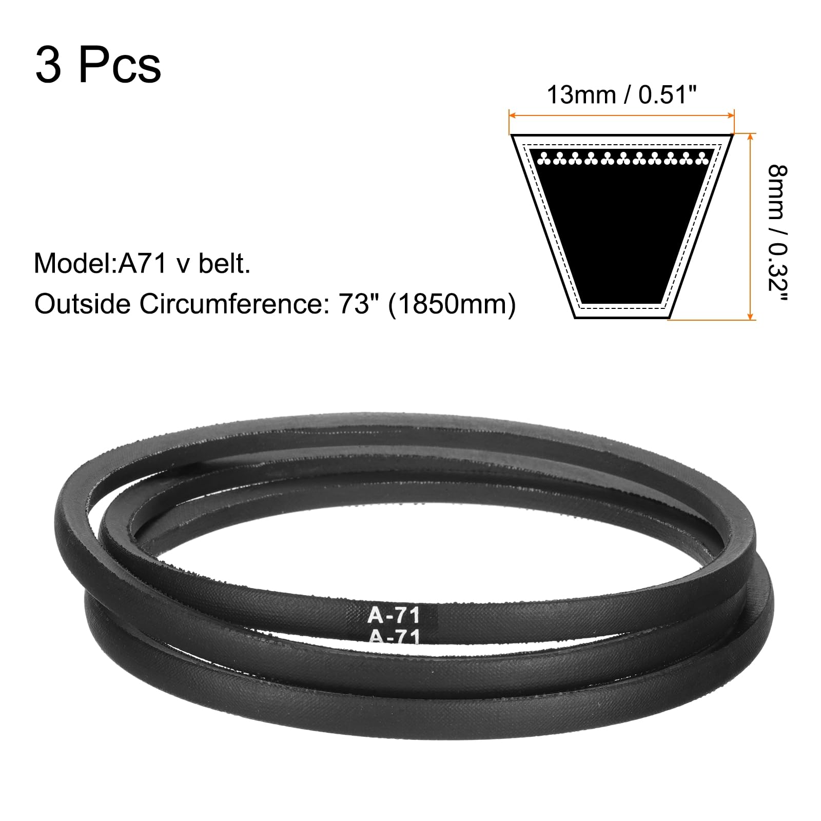 Model: A71 or 4L730 v belt. Inner Circumference: 71" (1800mm); Outside Circumference: 73" (1850mm).