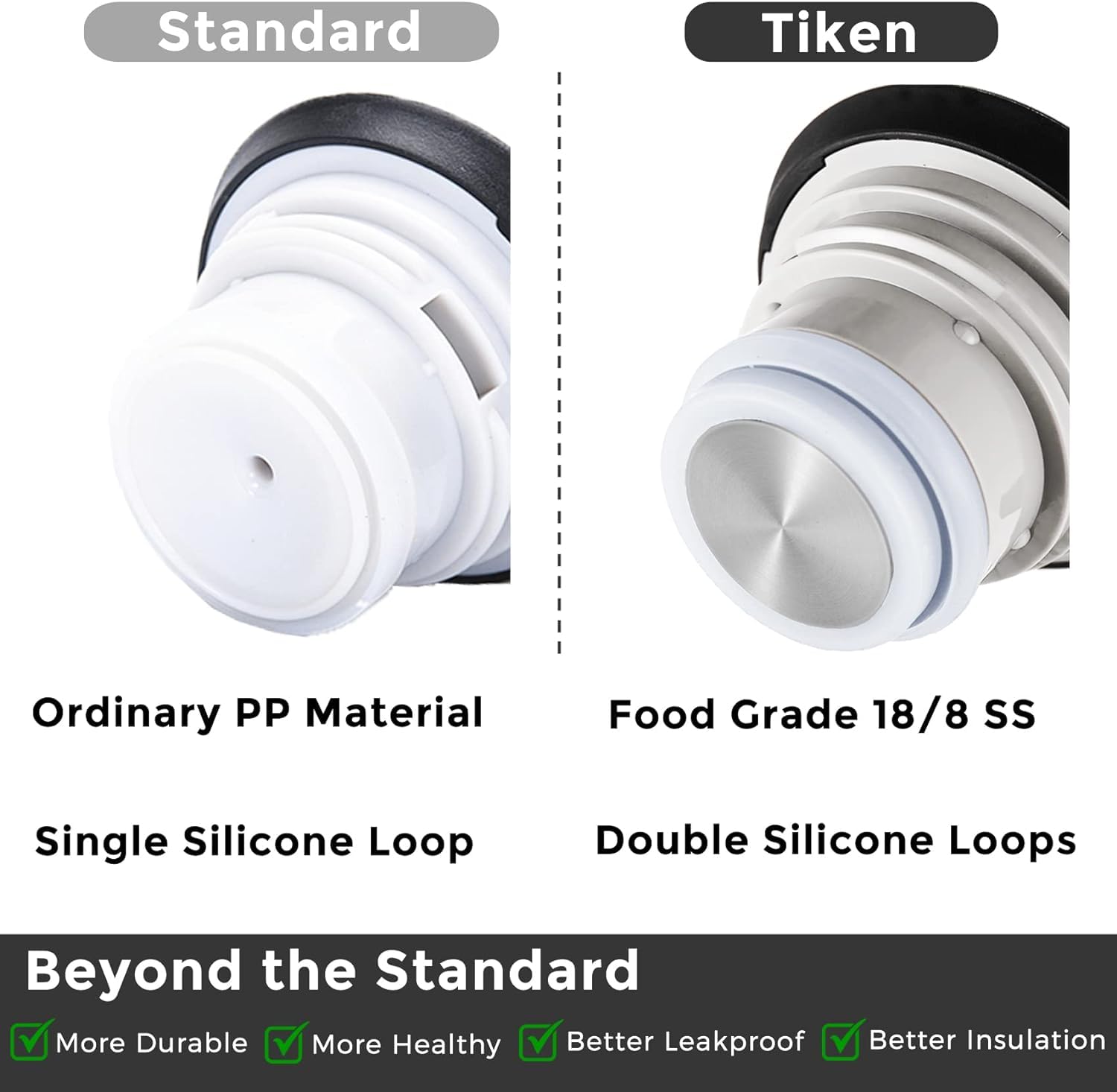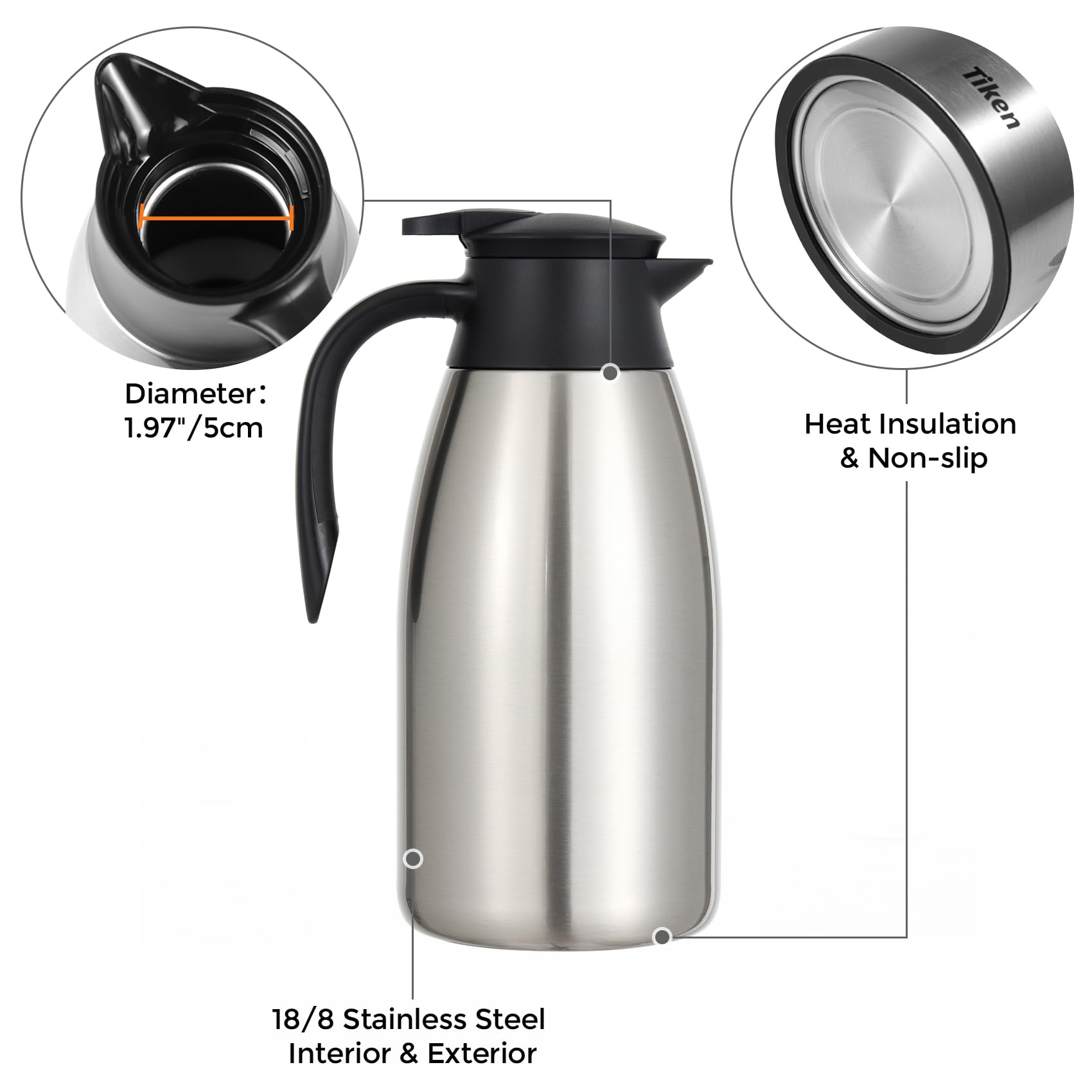Groove spout and inner dual silicon rings are available, which avoid leaking when pouring water. Our leak-proof lid is designed with a new insulated and air-tight construction, always locks in the correct place when closing. Even with a slight tilt, the thermal carafe pitcher will not leak one single drip.