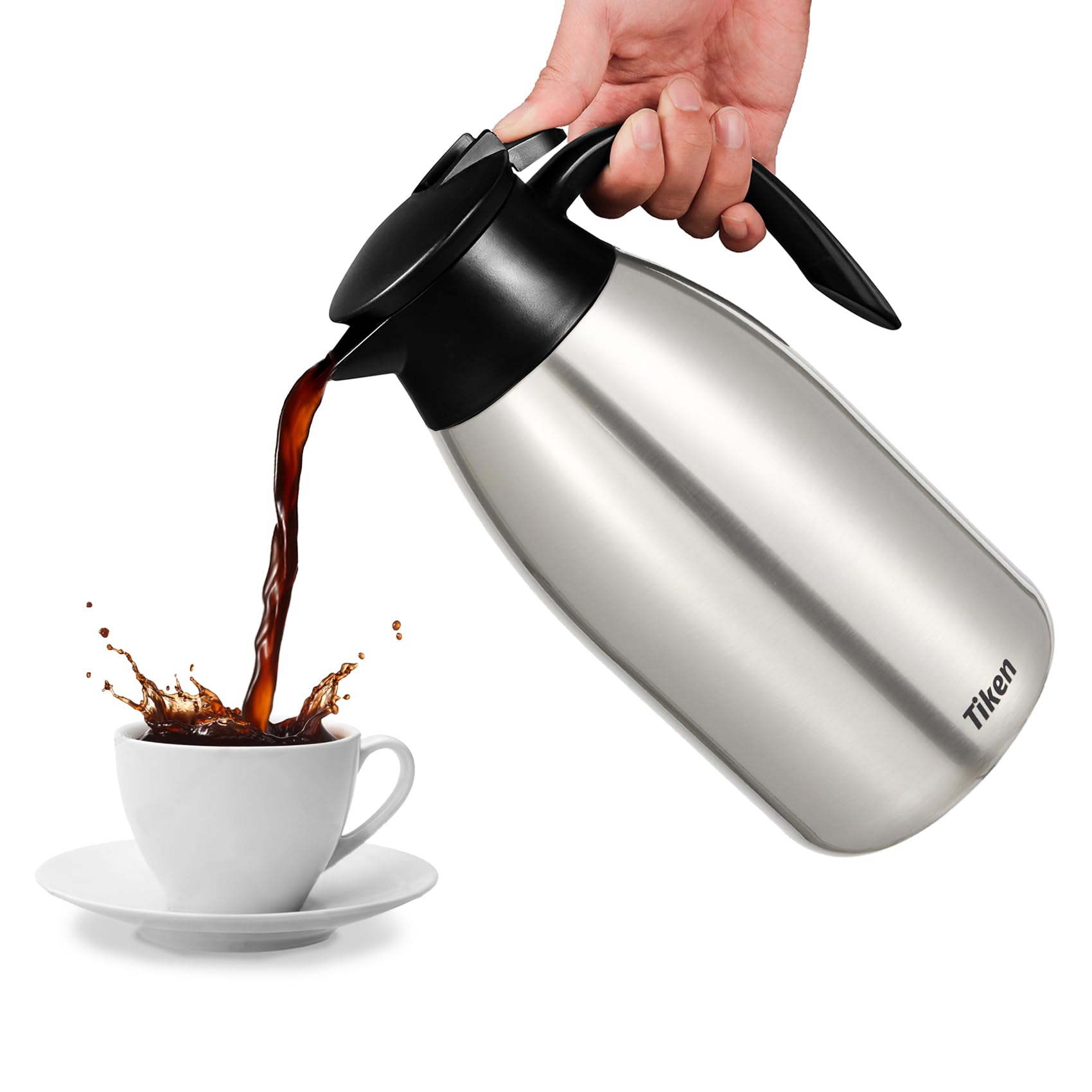 Our thermal coffee carafe uses a Press-down opening/closing mechanism. Pouring easily with push button ease, making one-handed pouring of the carafe simple.