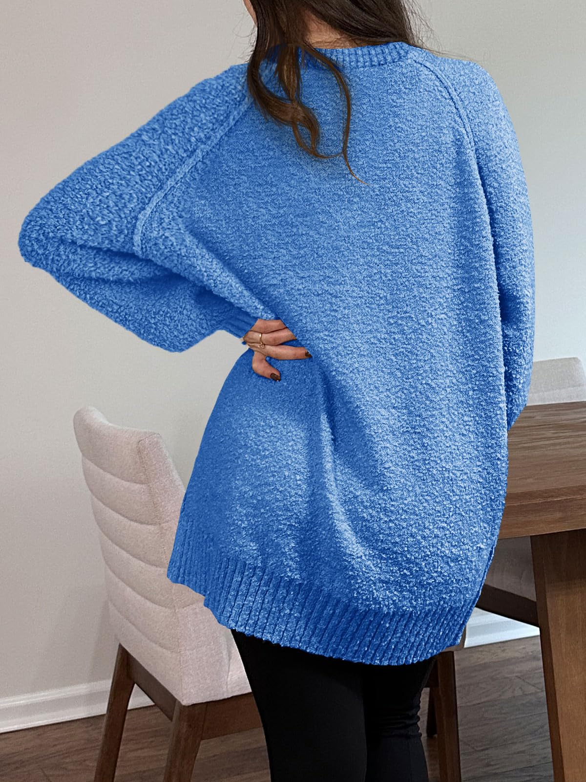 Features: Fuzzy fabric, oversized, long sleeve, ribbed knit hem, crew neck, drop shoulder, casual slouchy style, loose fit, solid color. The fuzzy sweater for women is good for early spring, fall and winter days.