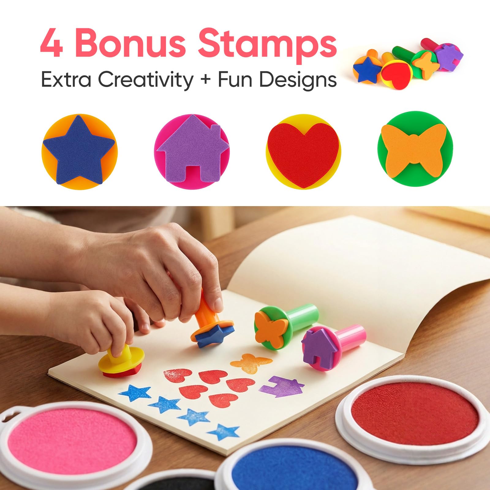 Spark Creativity with Vibrant Colors: Featuring 16 vibrant colors and 4 fun sponge stamps, this rainbow ink pad set allows your little one to unleash his/her free imagination and create unique works of art!