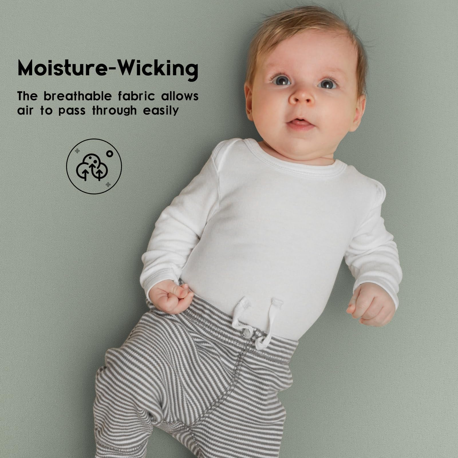 COZY AND BREATHABLE: Made from 95% microfiber & 5% spandex, our pack and play sheets are gentle and safe to touch, does not irritate baby's delicate skin. The breathable fabric also allows air to pass through easily and brings your baby a peaceful dream.