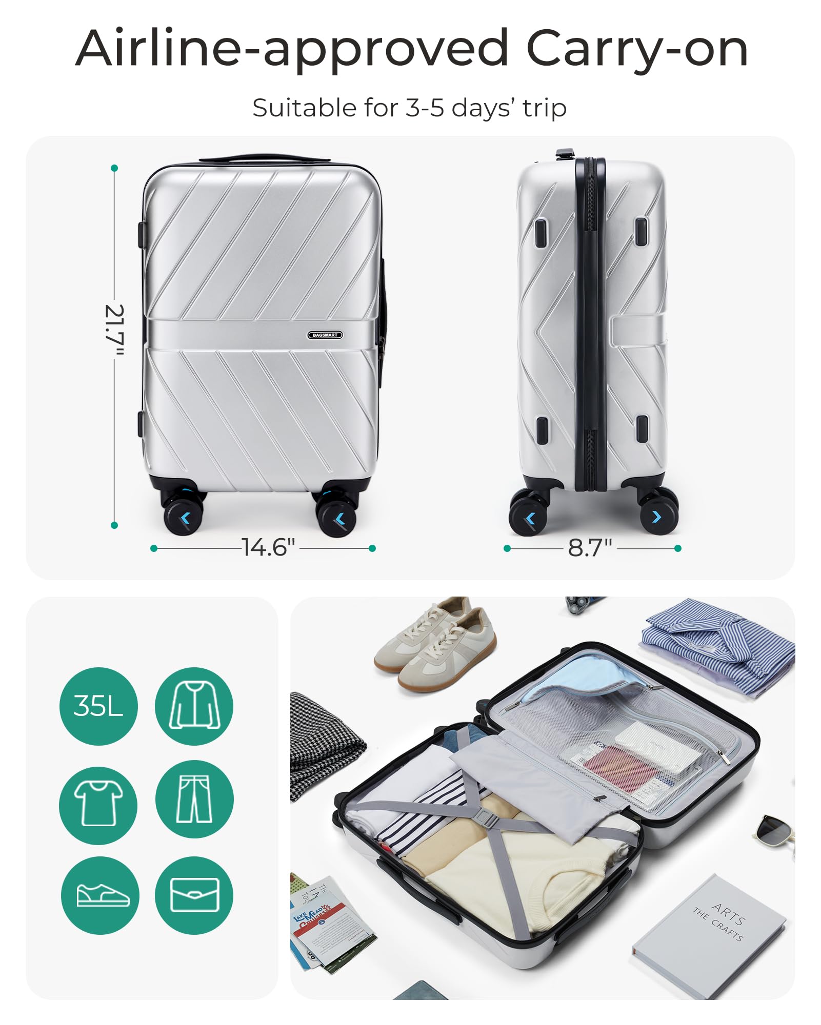 Room For More: BAGSMART hard case suitcase is designed to fit more into your trip. The 2 main compartments of travel luggage with compression cross straps store all your clothes and belongings and keep clothing wrinkle-free, items neatly in place. Individual built-in small pocket is for small items. Generously sized, thoughtfully placed designs maximize every inch of storage, meaning you can get more out of every trip with your carry-on.