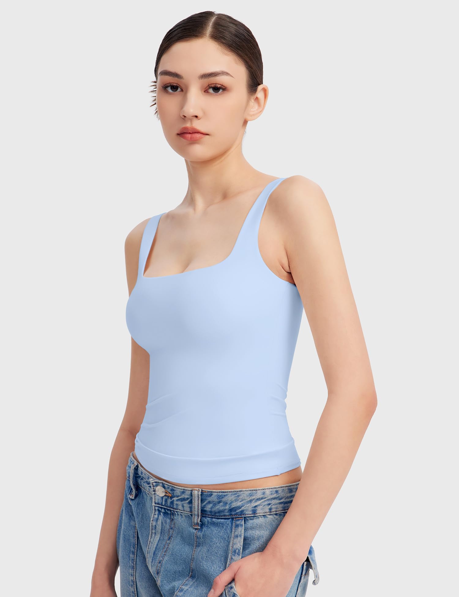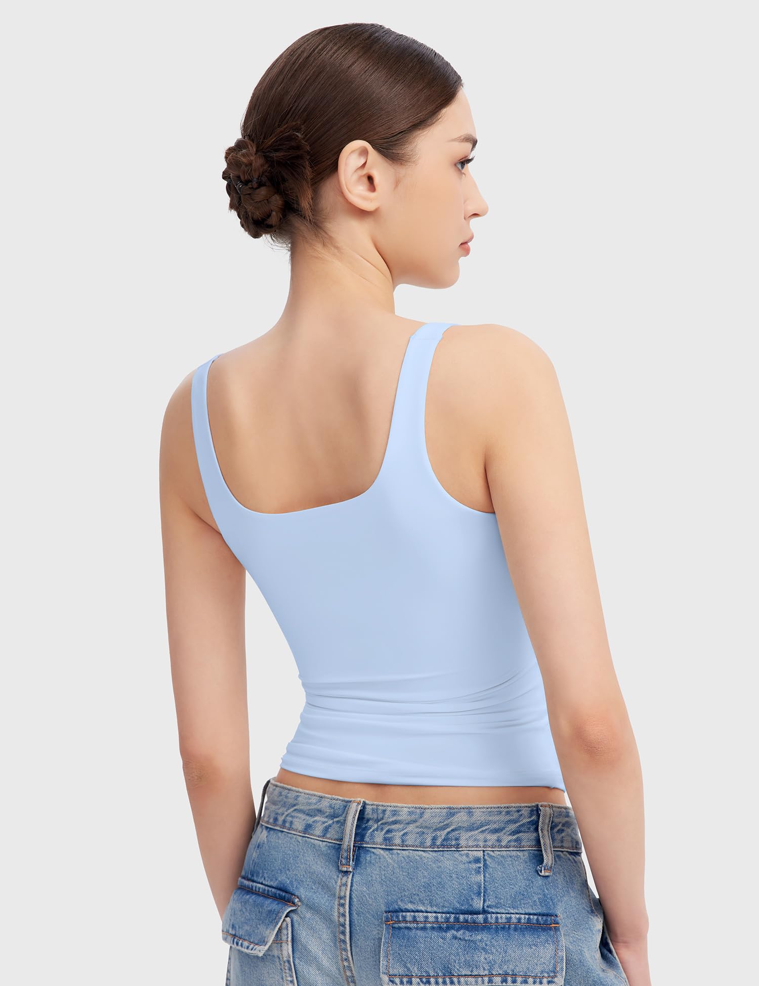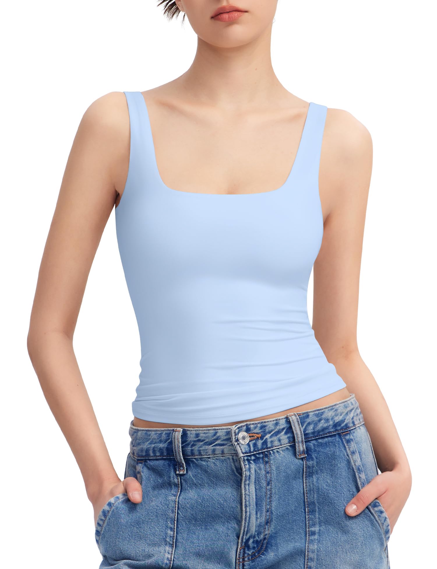 Double Lined Fabric: Our tank top for women boasts a double-layered fabric that guarantees both opacity and optimal breathability in hot summer. With its high elasticity and soft, skin-friendly fabric, you'll revel in unparalleled comfort and unrestricted movement.