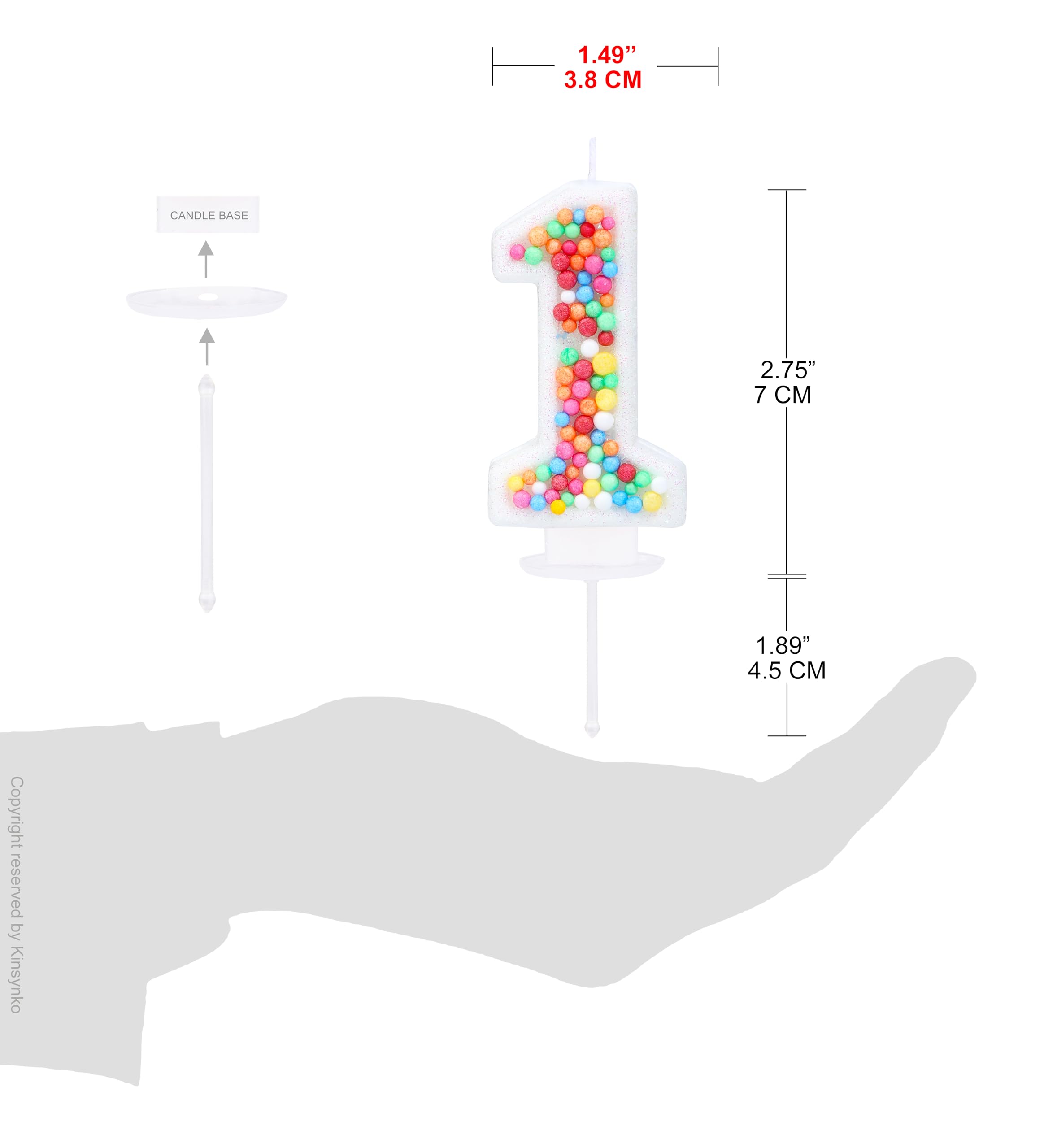 Perfect Size: The birthday candle 1 cake topper is 1.57 inches/4CM wide and 2.83 inches/7.2CM high, 1.89 inches/4.8CM plastic pole not included, suitable for different sizes of cake or cupcake