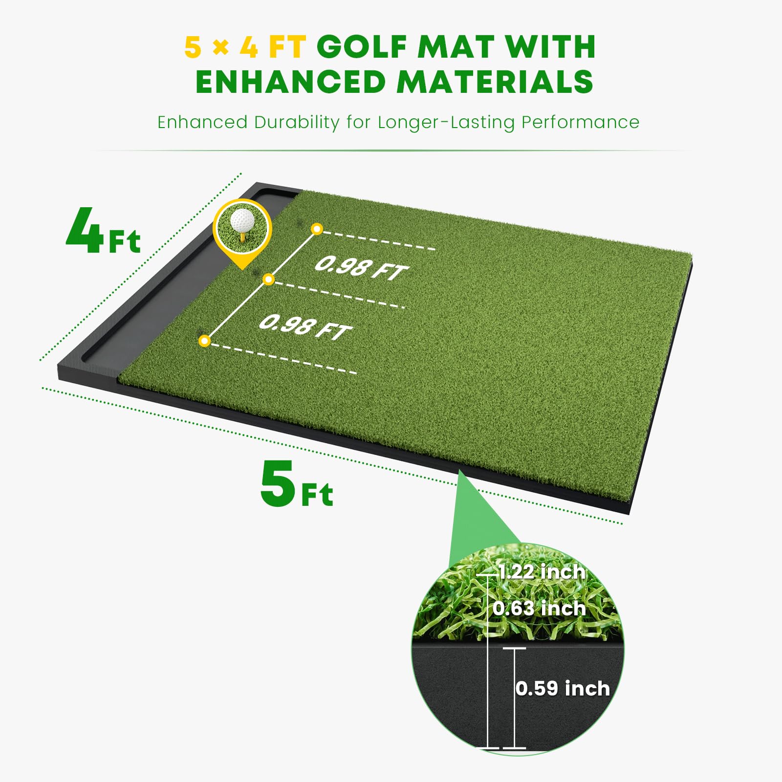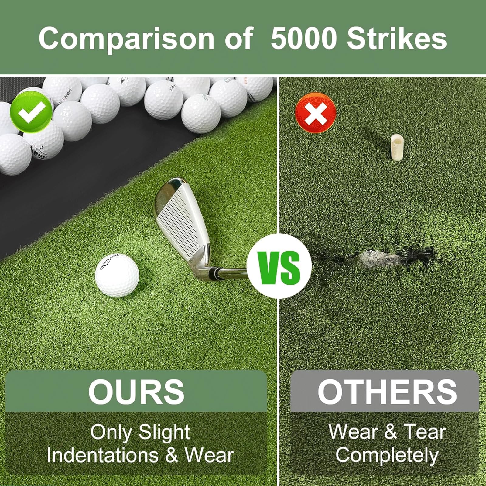 Enhanced Turf: Upgraded to 0.63 inch for better impact resistance and reduced wear. This commercial-grade artificial turf mimics real grass and includes an anti-tear layer between the turf and foam base, helping this golf mat practice indoor withstand high-frequency use and extend its life