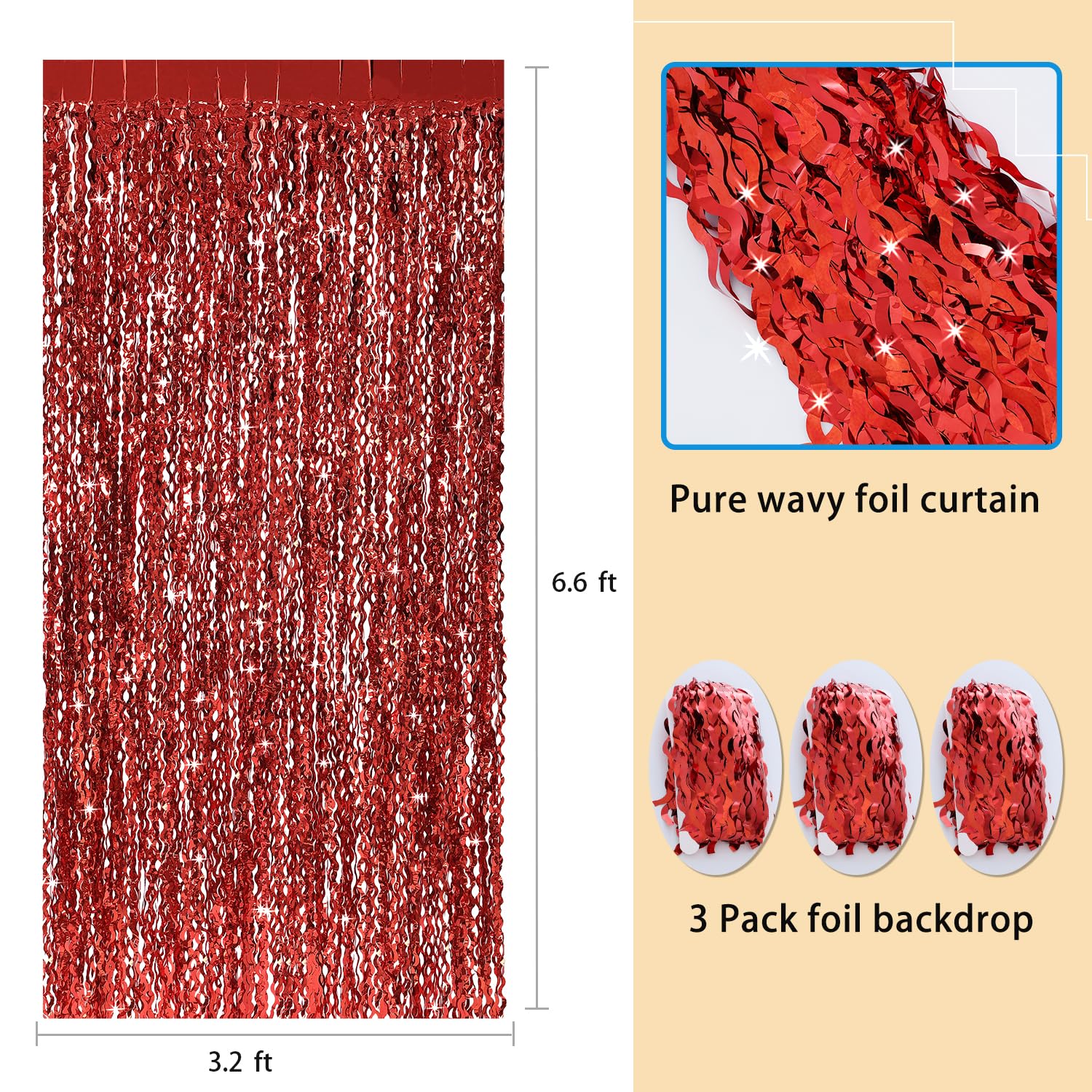 Packing Included: 3 pack tinsel foil fringe curtains party photo backdrop, Each pack curtains size is 3.3ft x 6.6ft, enough length for decorate your party