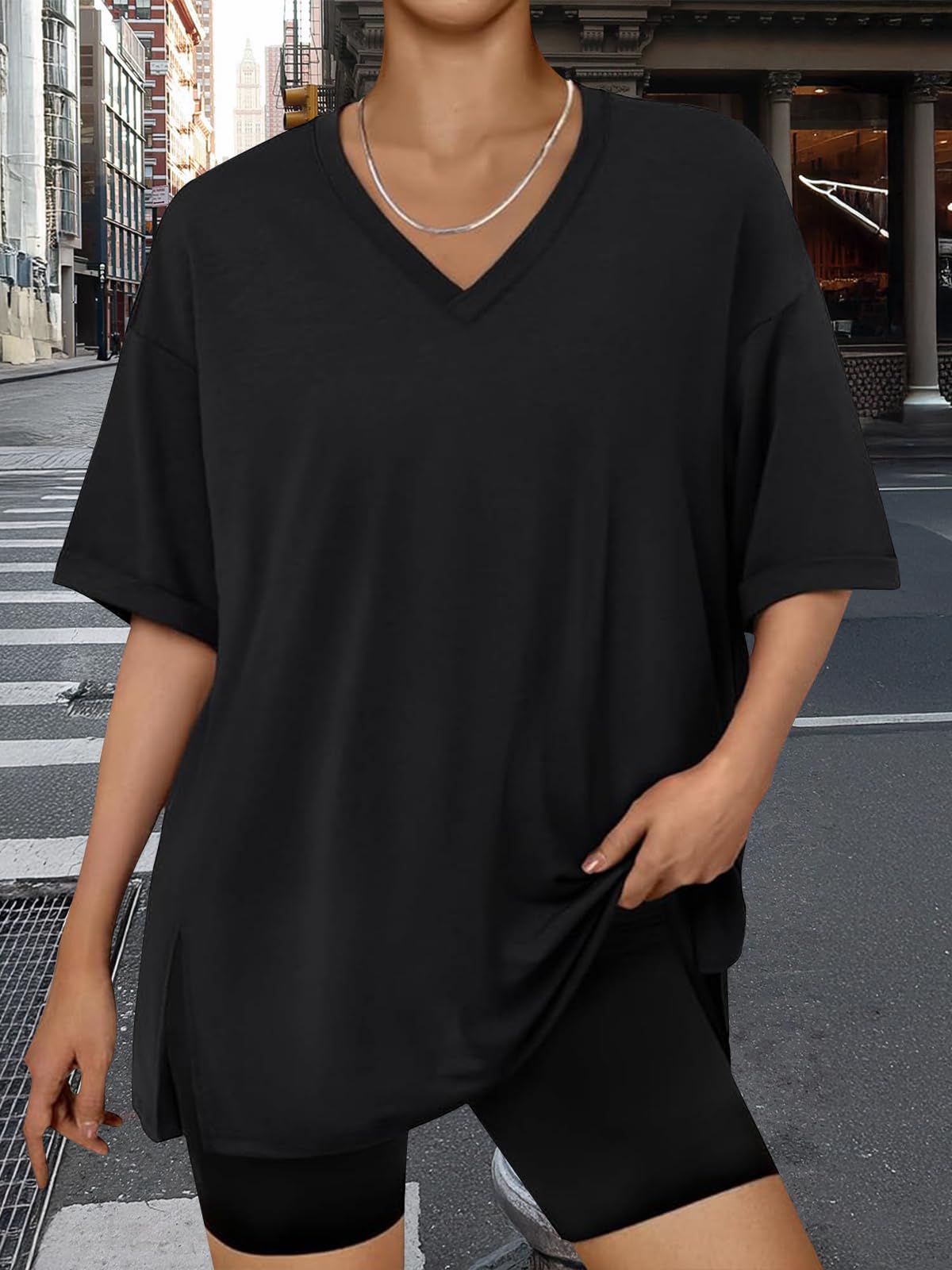 Design: Oversized tshirts for women, with loose fit design, v-neck, short sleeve, simple solid color style, with drop shoulder sleeves, fashionable and classic, casual style, suitable for spring and summer.