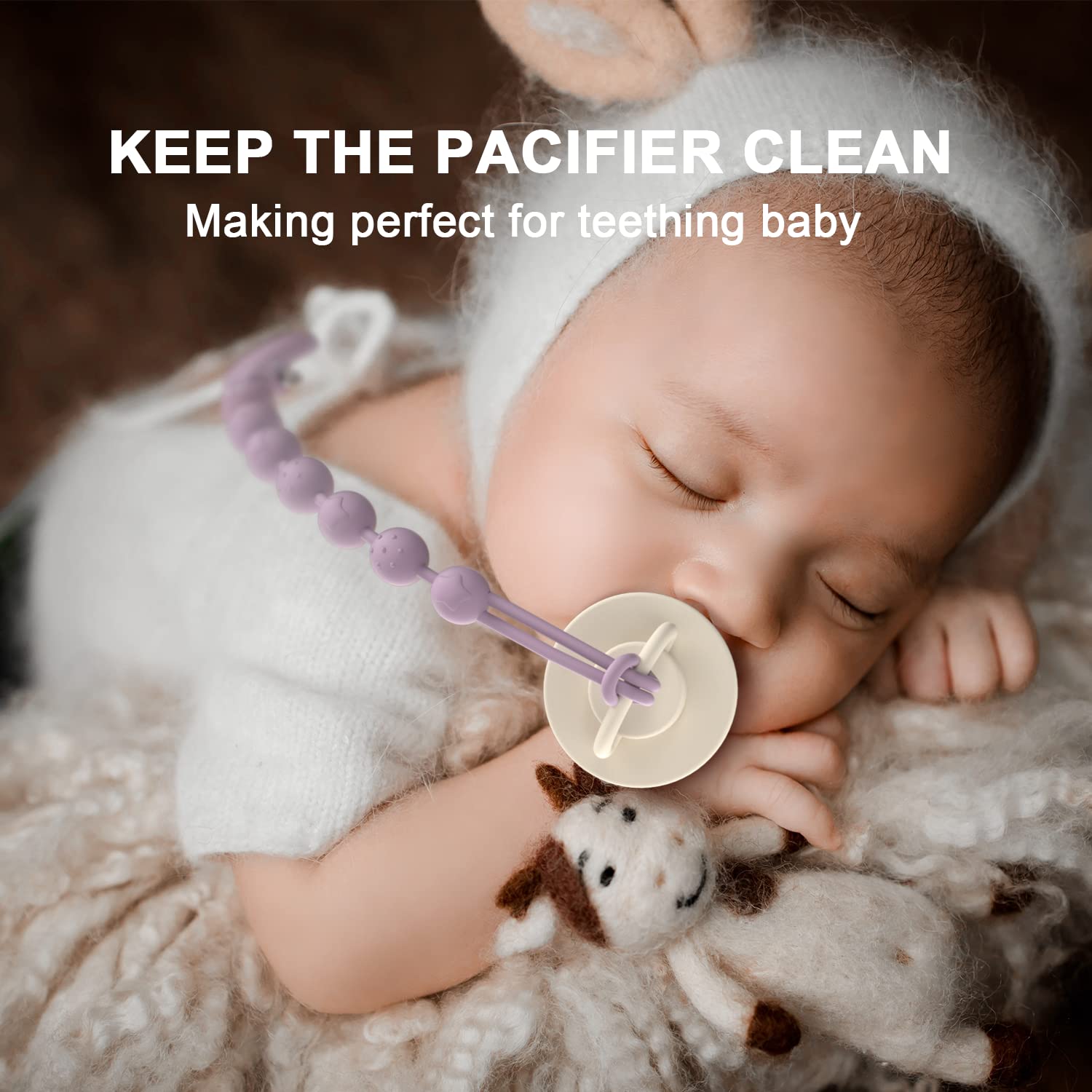 IDEAL PACIFIER CLIP: Our silicone pacifier clip comes in neutral colors (suitable for boys and girls) and works well to keep pacifiers clean—ideal for new moms. It’s compact and lightweight, attaching easily to baby’s clothes and fitting into bags or pockets. Whether you’re running errands, traveling, or out for walks, it keeps pacifiers within reach, prevents loss, and keeps them clean