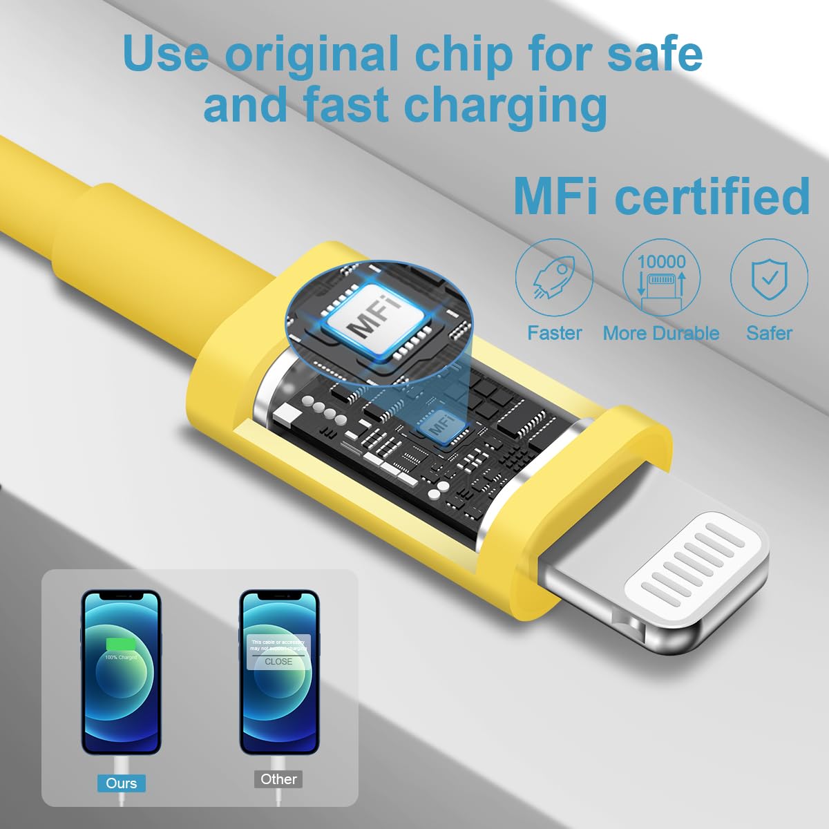 【MFi Certified Fast Cord】 With the MFi Chip, the USB-C to fast cord Firewire Cables equips automatic chip recognition function. The MFi Certification ensures 100% flawless compatibility with devices. No more trigger warning messages.