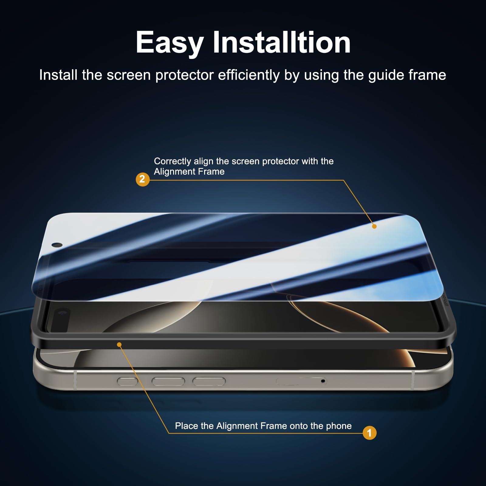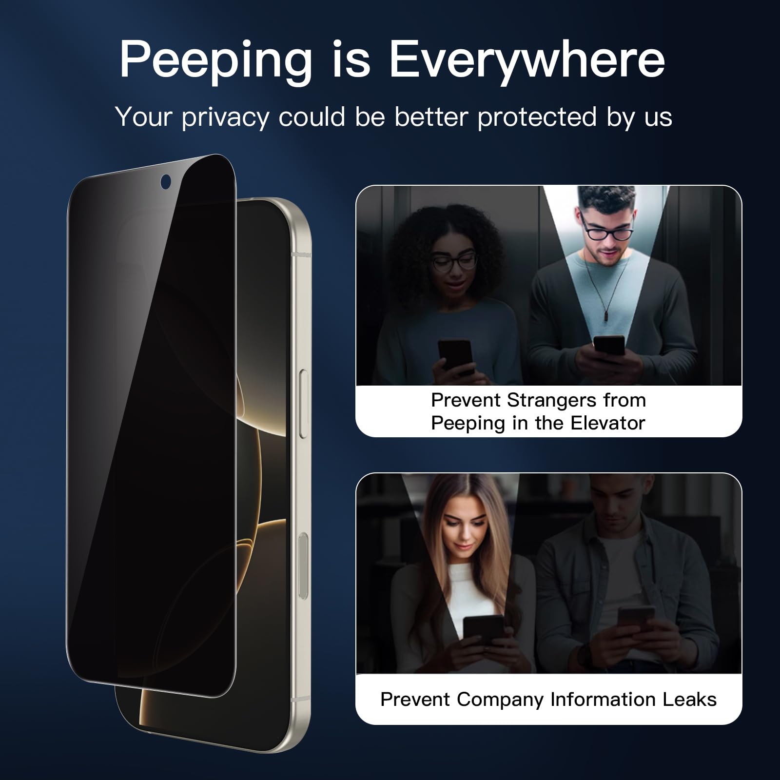 Content: 3 Tempered Glass Privacy Screen Protectors for iPhone 17, 17 Pro, iPhone 16 Pro (6.3 inches) and an easy installation tool. The privacy screen protector can protect the confidentiality of the data on the screen. It reduces the viewing angle to prevent prying eyes, keeping confidential information out of sight from third parties.