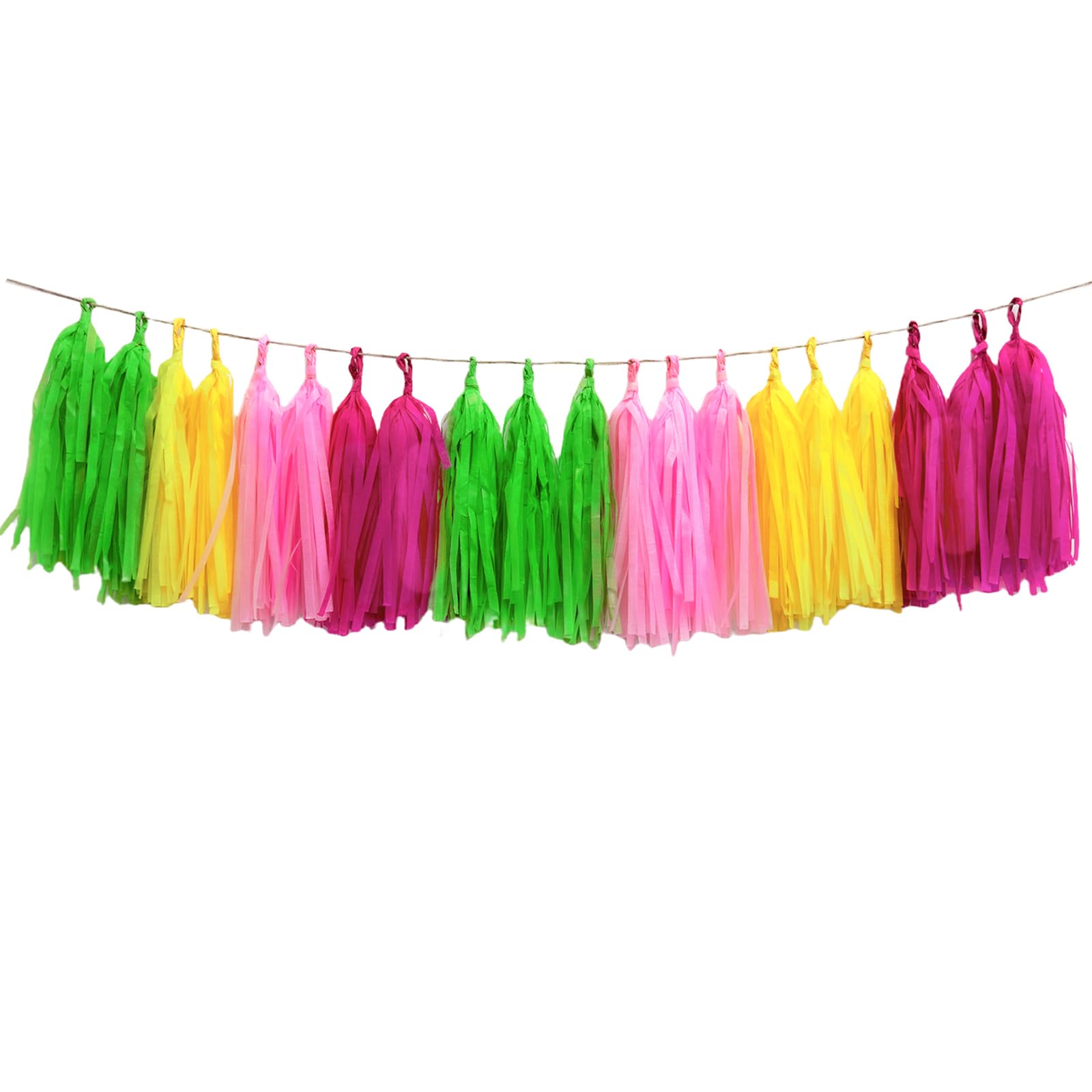 Pink Yellow and Green Tassel Garland Banner Paper Tassels