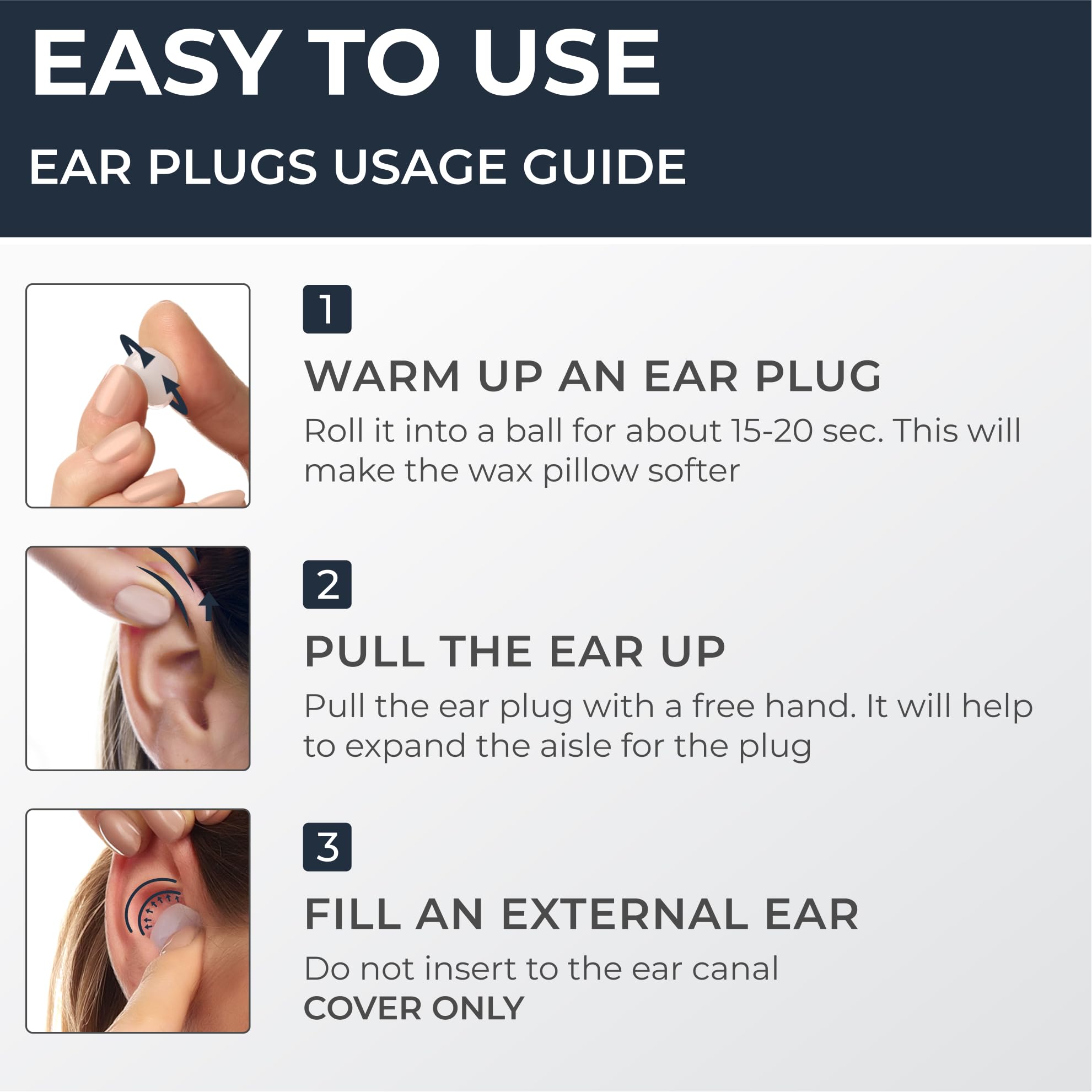 Ear protection in water: PQ Wax Gel Swimming earplugs are waterproof, so they protect your ears from water when swimming or taking a shower. Wax earplugs don’t fall out and don’t pressure your ears like rubber ear plugs