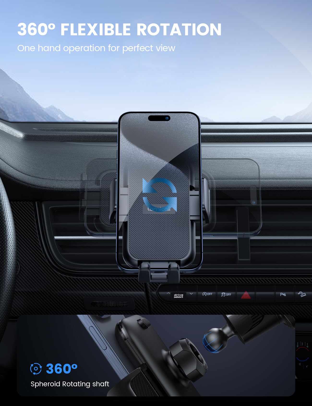 360-Degree Rotation: Unlike similar products on the market, this cell phone car holder gives you the best viewing angle no matter your needs, providing a 360-degree fully rotative design great for navigation, changing playlists, taking calls and more.