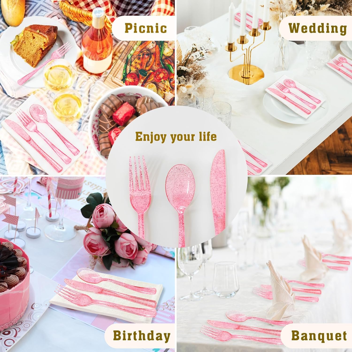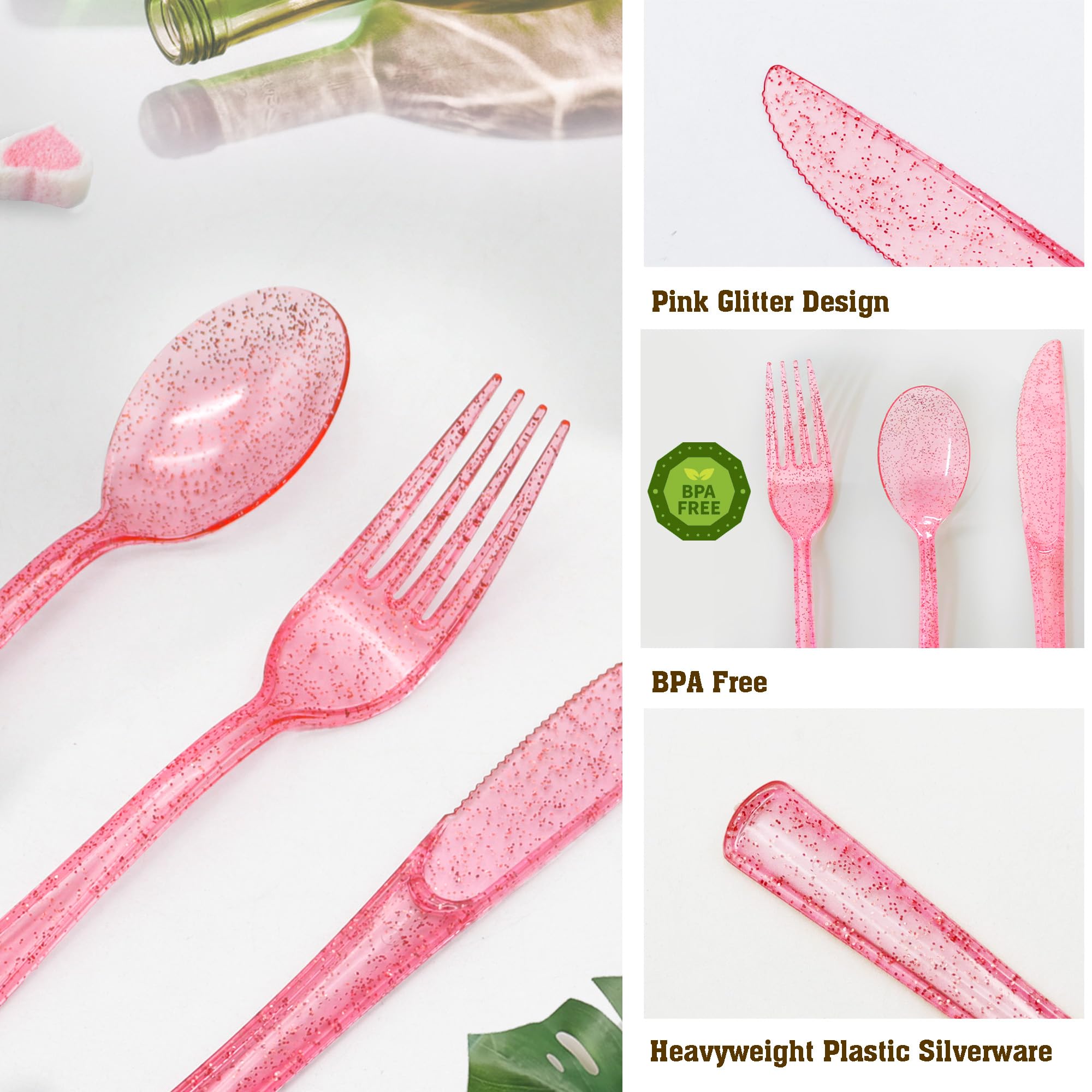 【Great For All Occasions】: Pink plastic silverware is suitable for a variety of occasions and uses, whether it is used for birthday, Valentine's Day,wedding,baby shower, bridal shower,Bachelorette Party, holiday, girls' parties, picnics, etc. This pink spoons are able to add a romantic and special atmosphere to these special occasions, attracting people's attention.