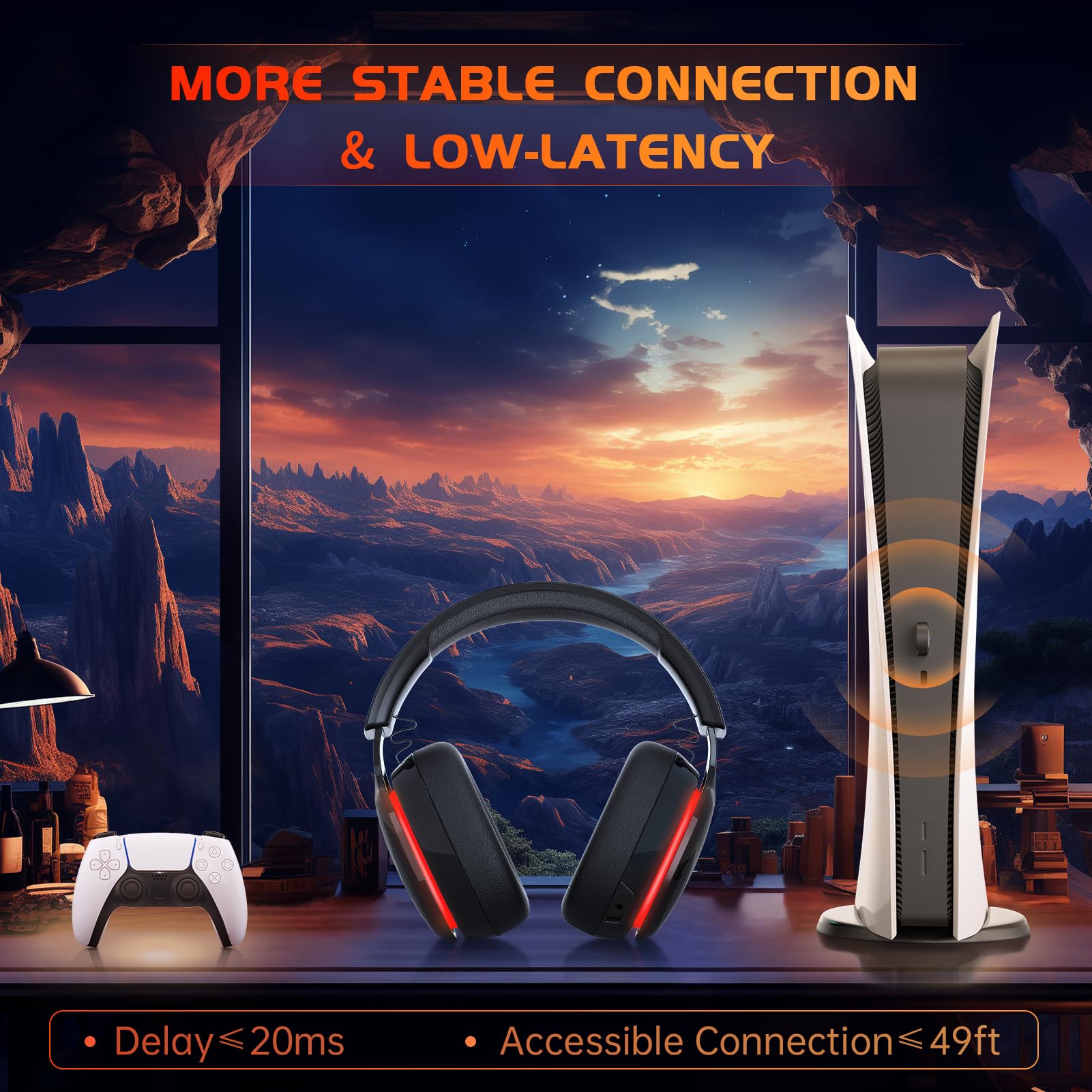 Stable Connection & Stereo Sound: Gtheos Captain 300 wireless gaming headset combines high performance 2.4GHz lossless wireless technology for the accessible connection up to 49 feet in an unobstructed space. Lower latency (≤20ms) and featuring 50mm driver with 30% extra sound effect ensure that the wireless gaming headphones provide higher quality stereo sound, which makes you sense voice of directions, footsteps and every details clearly in games for a better immersive gaming experience. This ps5 headset is very suitable for Fortnite/starfield/Call of Duty/PUBG