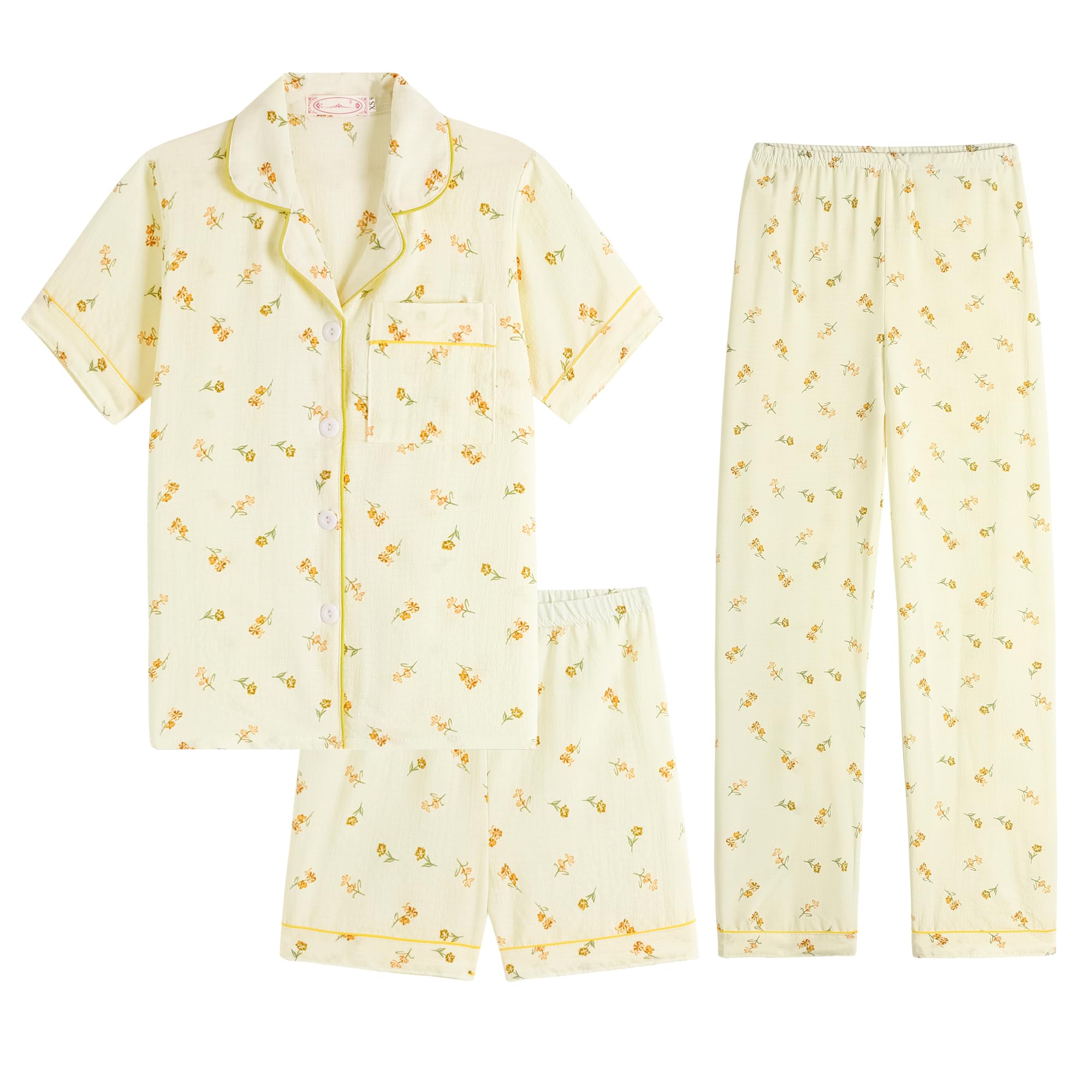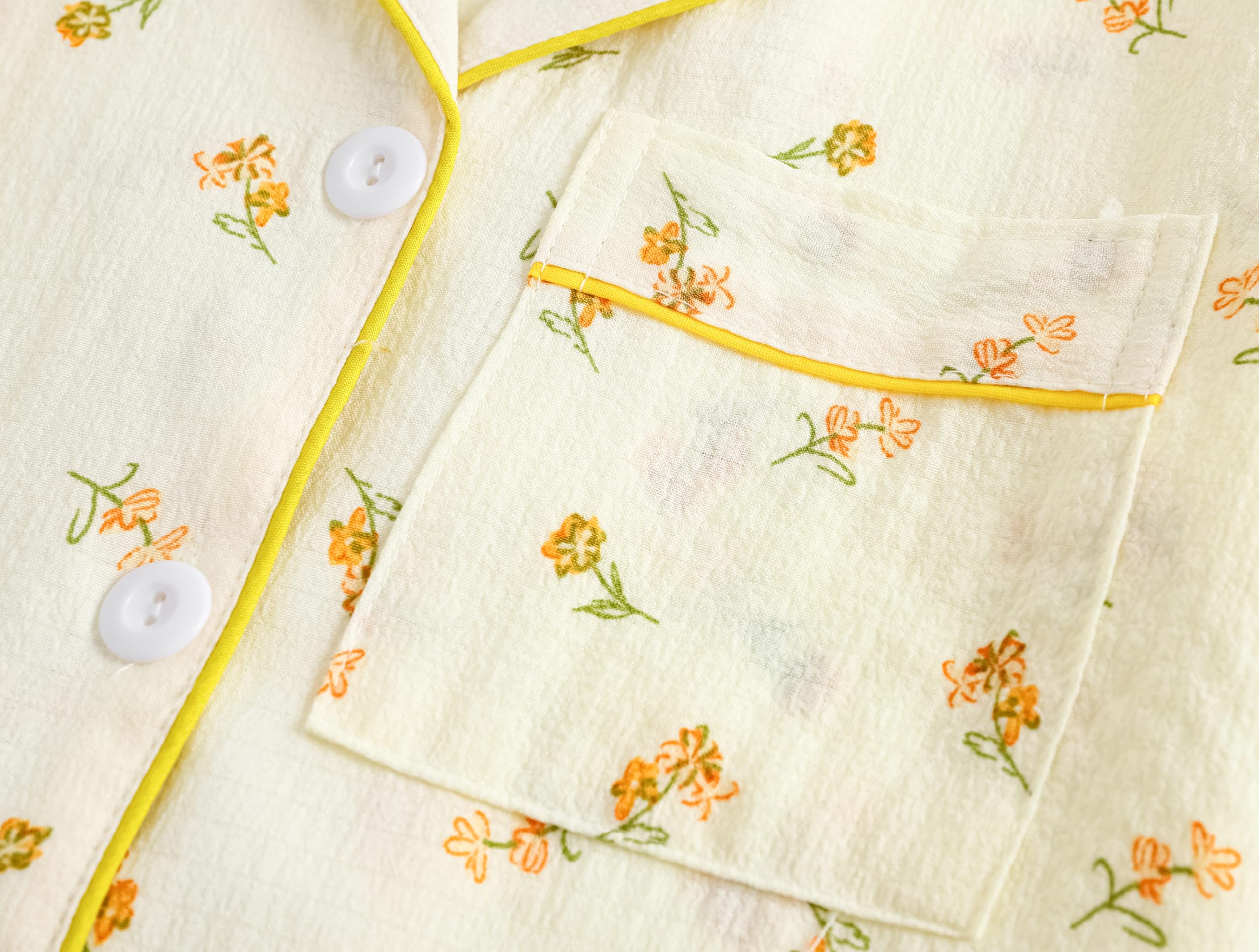 Design: Button up short sleeve shirt with classic shirt collar and front pocket. Matching with stretchy waistband long pants and a shorts, very flexible and so much fun! It is like you get two sets of pajamas at the same time for your girls. Super Value 3PCS Pajama Sets. Super casual sets for kids sleeping night.