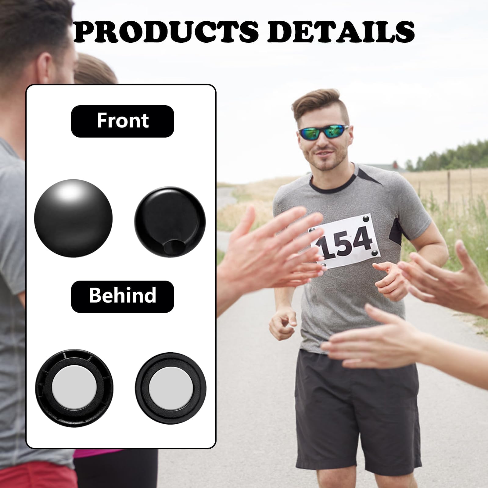 【Magnetic Materials】The race bib magnets are designed by a professional factory and made of very good plastic material. The diameter of each magnetic buckle is about 16-17.5mm, the diameter of the internal magnet is about 10mm, and the material is light and portable. The internal magnet adopts high-strength magnetic force and has sturdy adsorption force. The product is not easy to damage, which can ensure use for a long time.